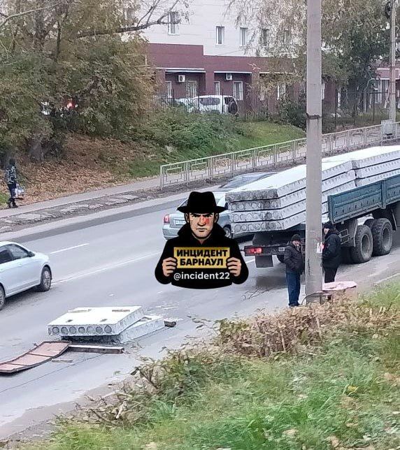 Плиты выпали на проезжую часть проспекта Калинина из прицепа грузовика. Об этом сообщает telegram-канал "Инцидент Барнаул".Происшествие случилось возле здания по адресу Калинина, 11а, на подъеме после железнодорожного моста...