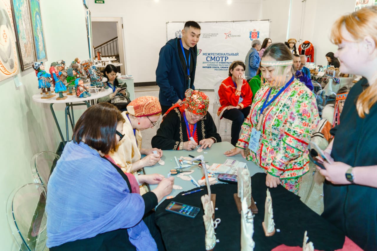 Центр подготовил экспозицию традиционных ремёсел «Наши корни». На выставке представили ювелирные украшения для волос из бисера и каури, ритуальные маски божеств «Пайне» и «Кочо» из бересты, традиционные обереги из кости, тканные пояса и куклы из шерсти.