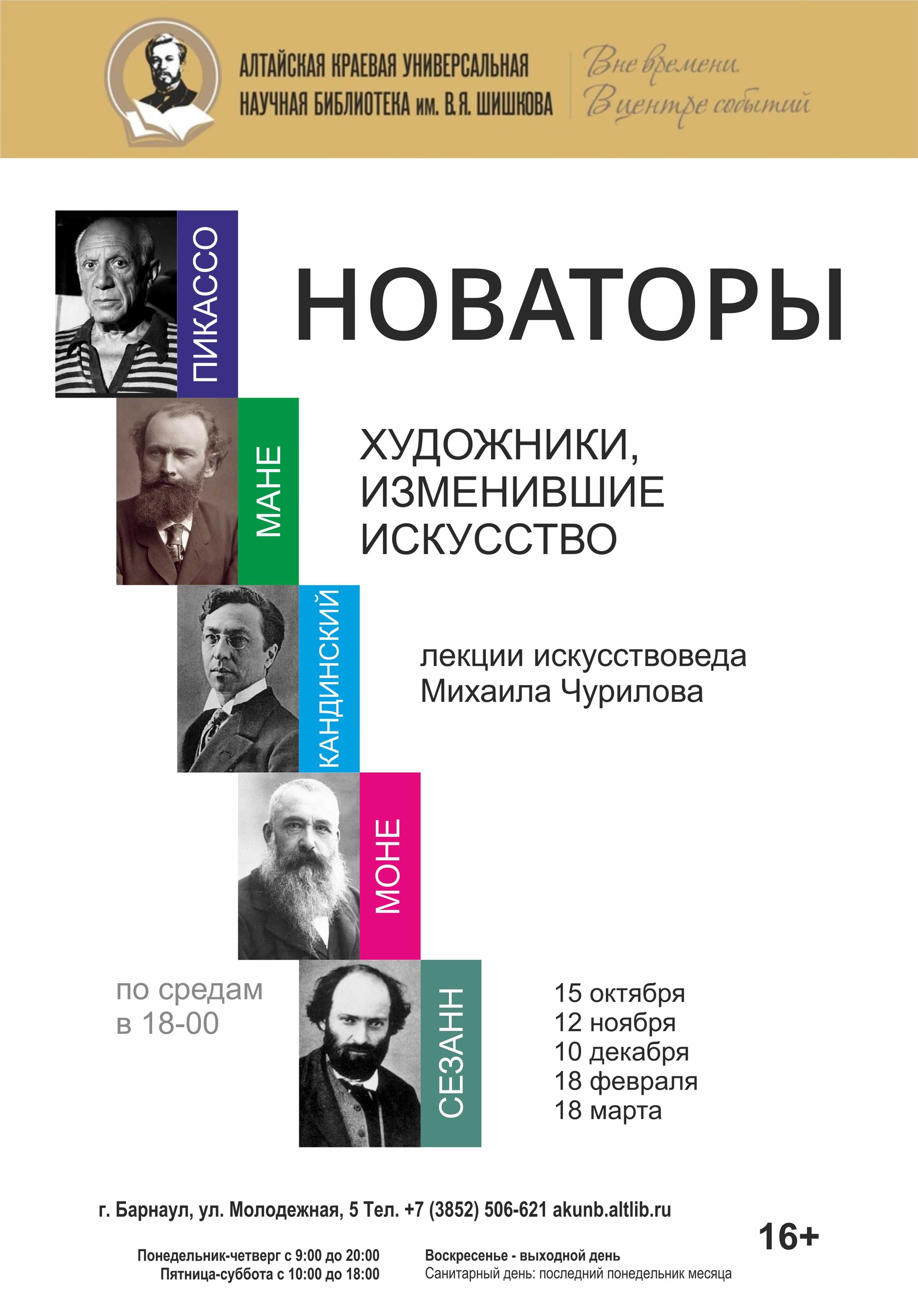С 15 октября в Алтайской краевой библиотеке им. В. Я. Шишкова начинается новый цикл лекций, посвященный художникам-новаторам