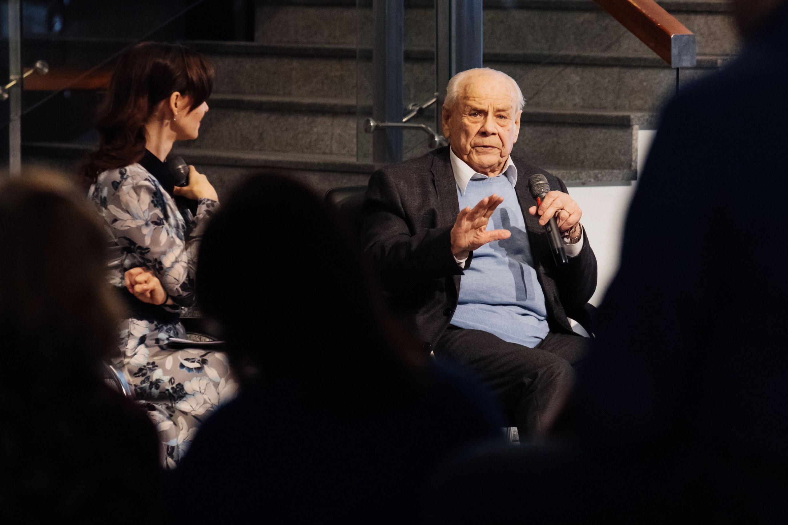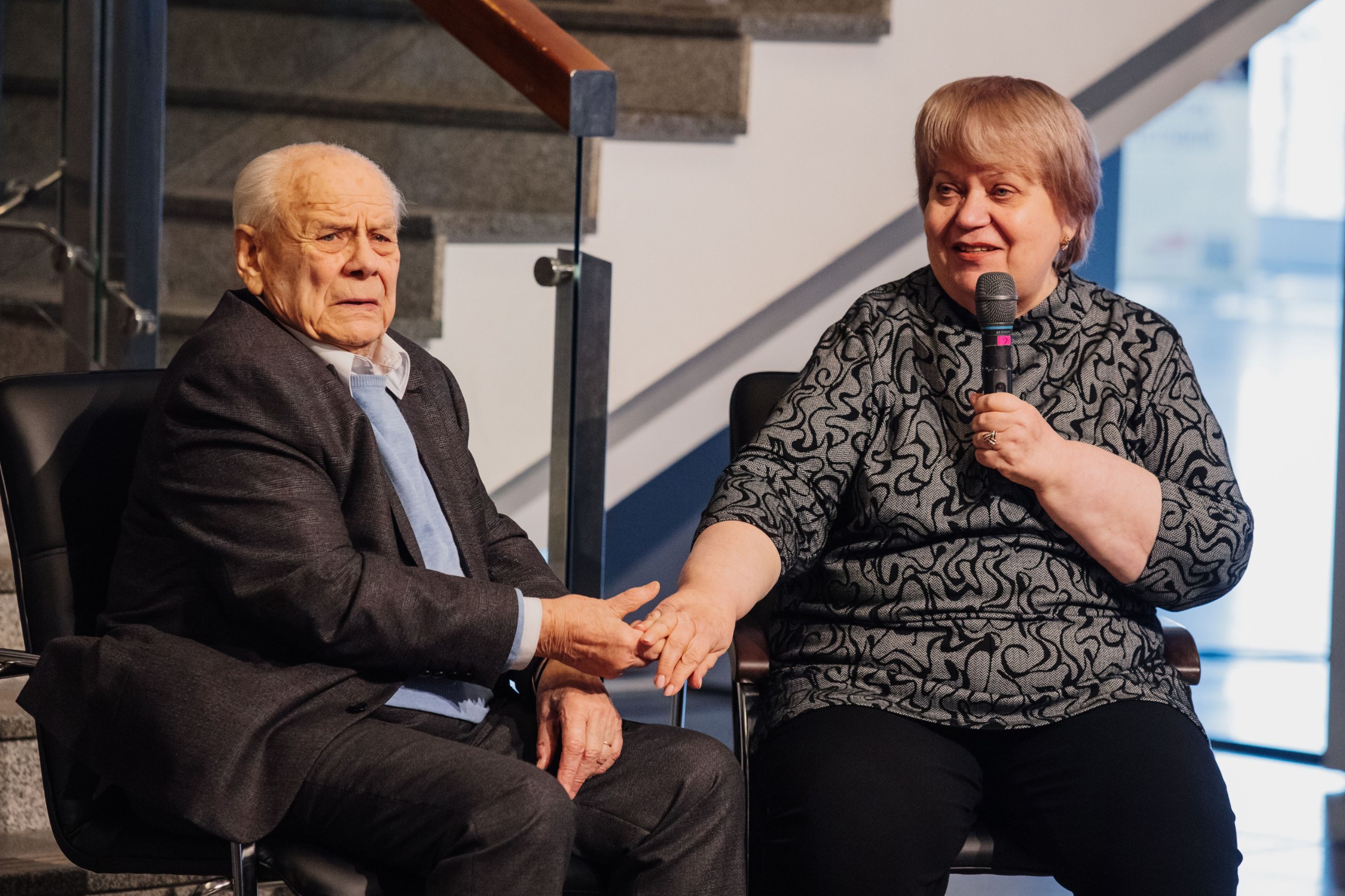 Презентация стала живым диалогом. В центре внимания, конечно, был сам герой Георгий Обухов, чей актёрский стаж приближается к 70 годам. Он поделился историями, которые легли в основу книги.