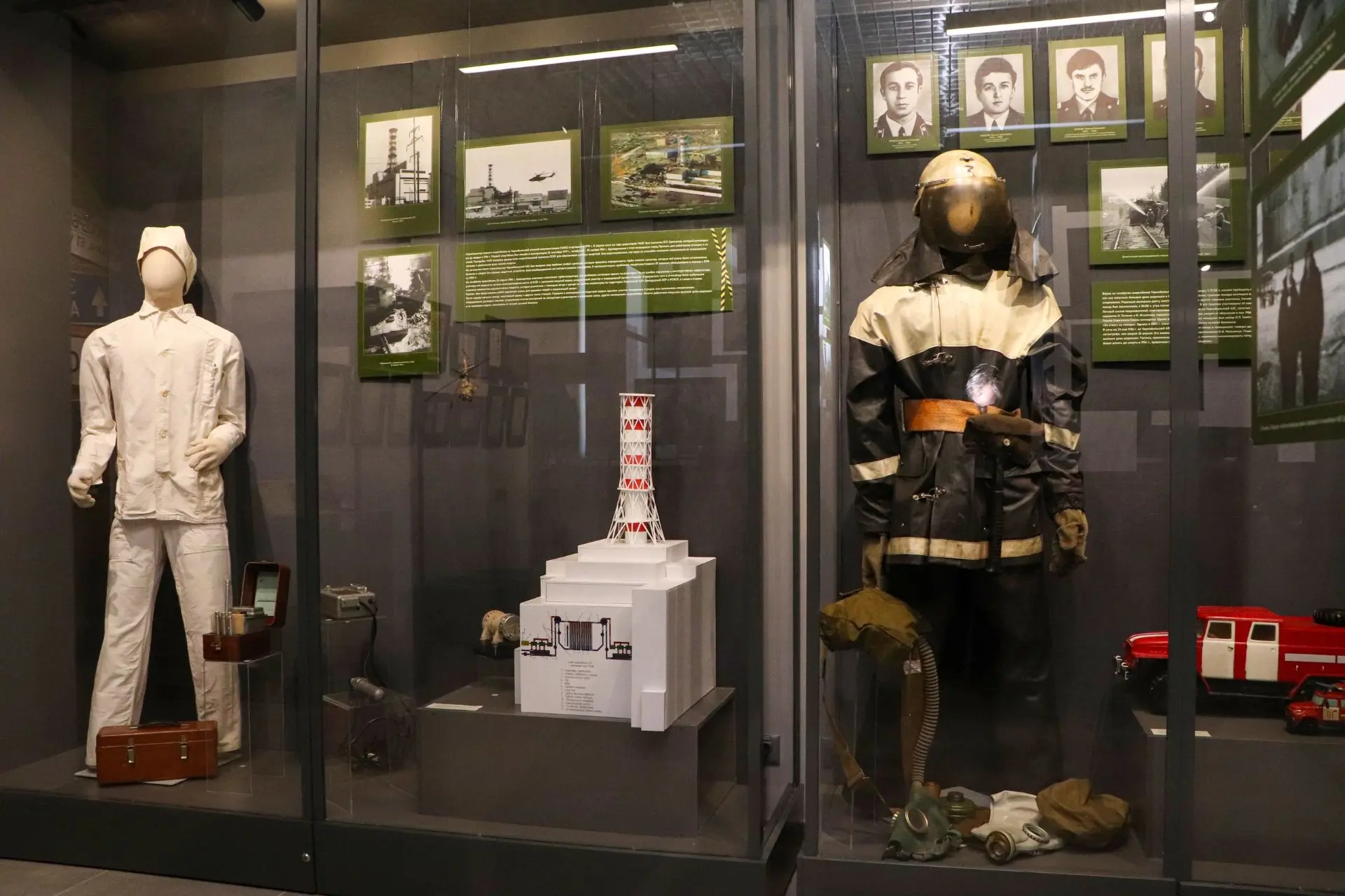 Присутствующие могли проникнуться каждым представленным экспонатом, среди которых форма пожарного 80-х годов XX века, модели автомобилей, униформа медицинского работника. Особое внимание гостей привлекли макет энергоблока Чернобыльской АЭС, архивные фотографии и документы, личные вещи ликвидаторов – специальная одежда. Отдельный раздел посвящен разрушительным последствиям аварии для экологии и здоровья людей.