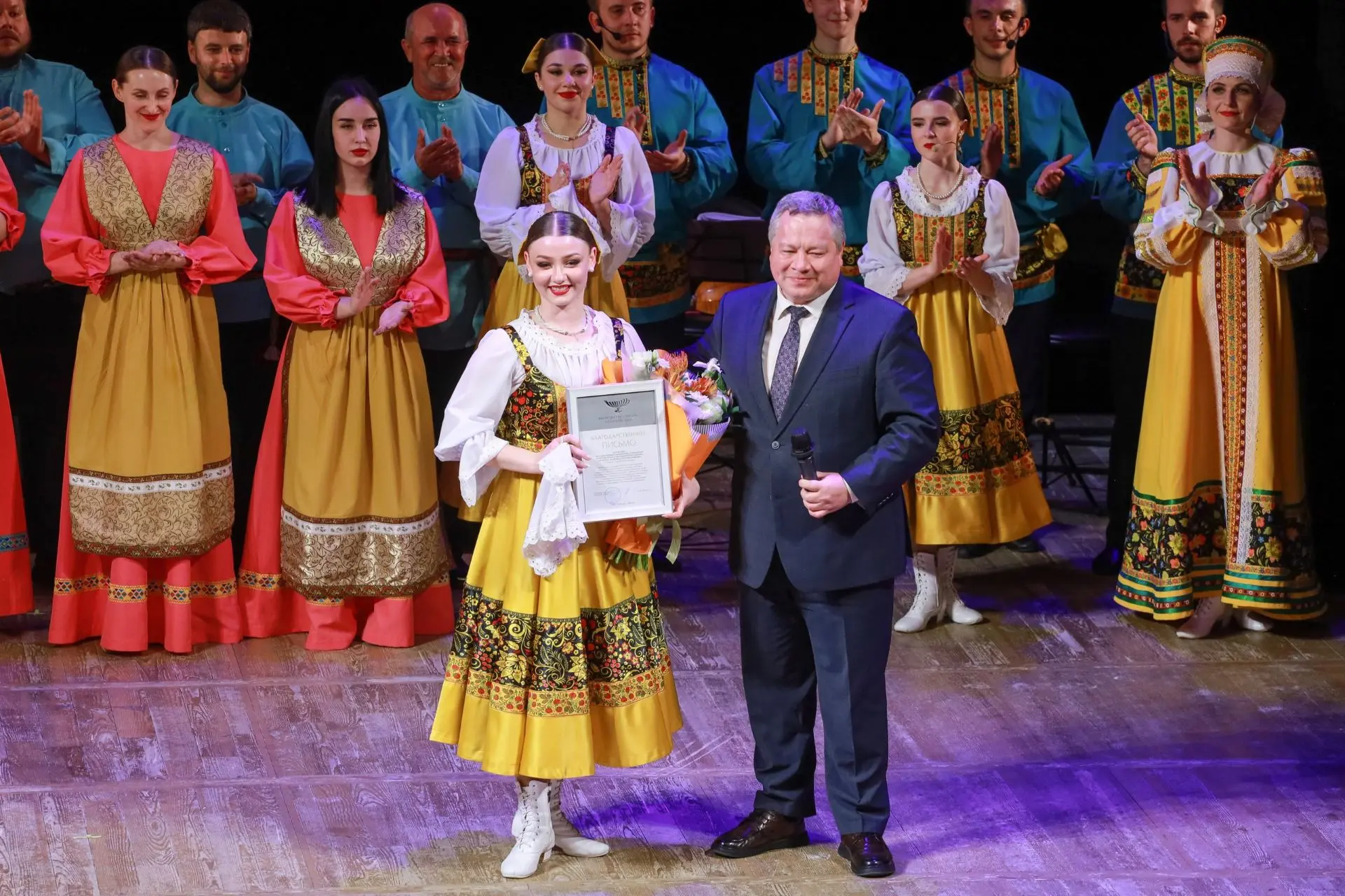 Со словами благодарности к коллективу после яркой концертной программы от имени Губернатора края Виктора Томенко и всех жителей обратился заместитель Председателя Правительства Алтайского края Юрий Абдуллаев: «Луганщину и Алтайский край связывают крепкие творческие узы. В 2024 году при поддержке Росконцерта наш ансамбль «Огоньки» краевой филармонии и Государственный молодежный ансамбль песни и танца «Алтай» побывали с гастролями на Луганской земле. А сегодня мы встречаем замечательные коллективы Луганской академической филармонии, которые выступают за возрождение и сохранение лучших традиций народного искусства. Правильный, хороший танец, основанный на русских традициях, и голоса – это богатство Луганской земли, которым вы щедро поделились с нами. Разрешите поблагодарить вас за этот праздник души, мастерства и вдохновения, который вы нам сегодня подарили!».