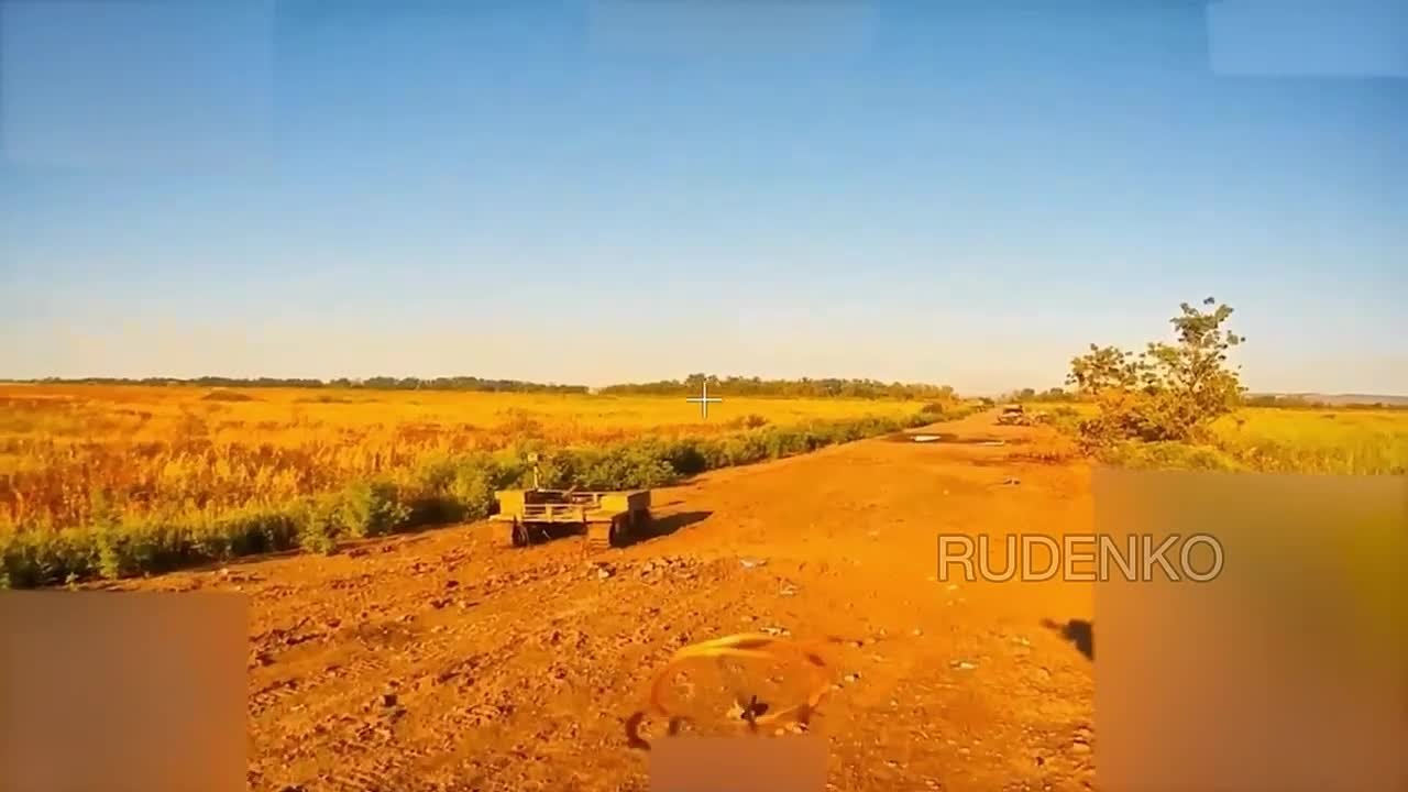 На кадрах запечатлён момент точного попадания дрона в беспилотную тележку с последующей детонацией.