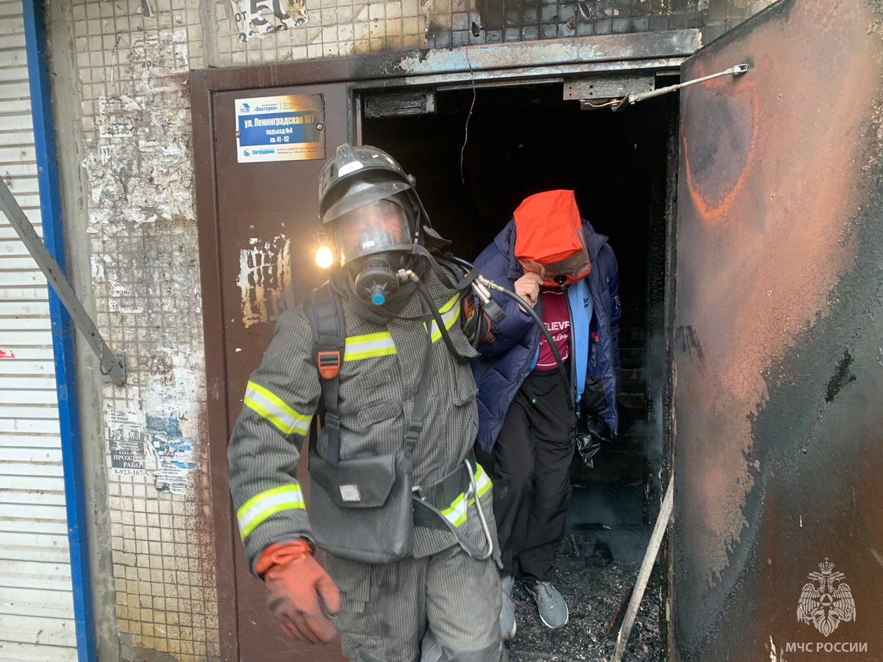 По ул. Ленинградская произошло возгорание в подъезде на первом этаже пятиэтажки. Огонь оперативно ликвидирован пожарными МЧС на площади около 5 квадратов. Из опасной зоны газодымозащитники по лестничным маршам вывели 6 человек, при помощи автолестницы через окно спасены ещё двое.