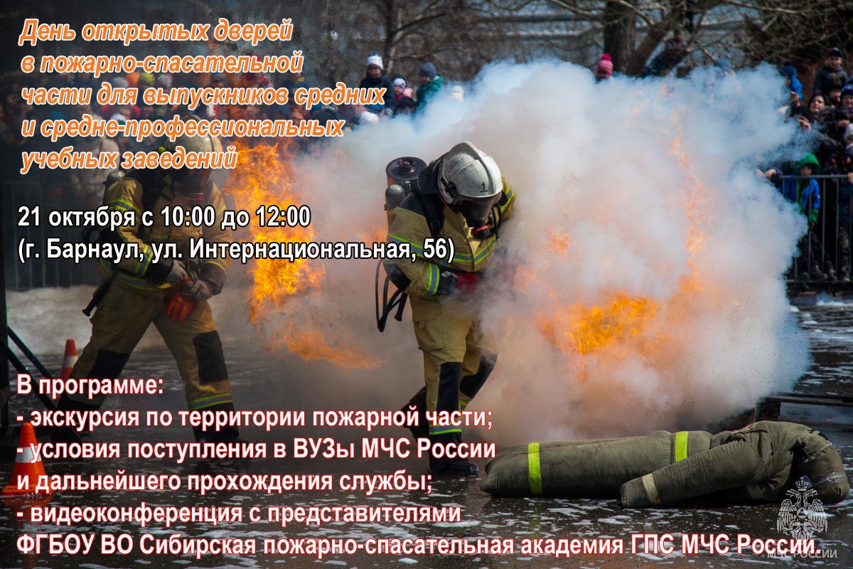 Хочешь узнать подробности об учёбе и службе? Приходи на день открытых дверей в пожарно-спасательную часть №1 города Барнаула!