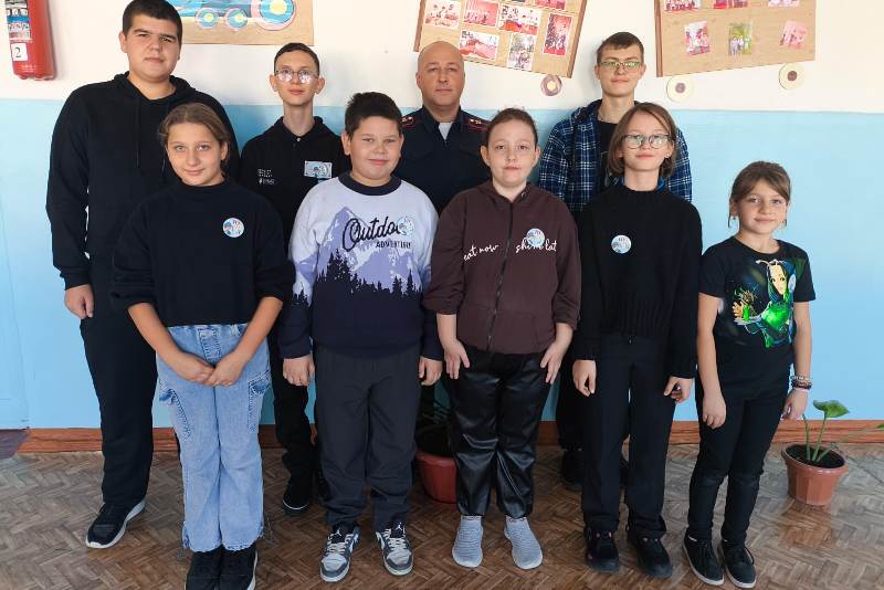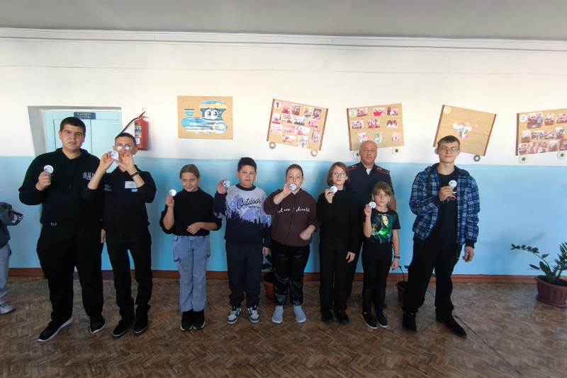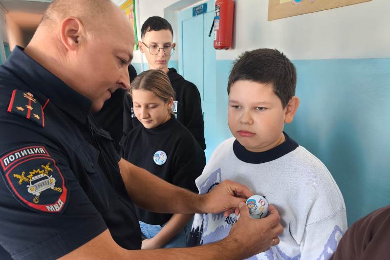 В завершение церемонии инспектор торжественно вручил детям значки – символ принадлежности к движению ЮИД и провел фотосессию на память.