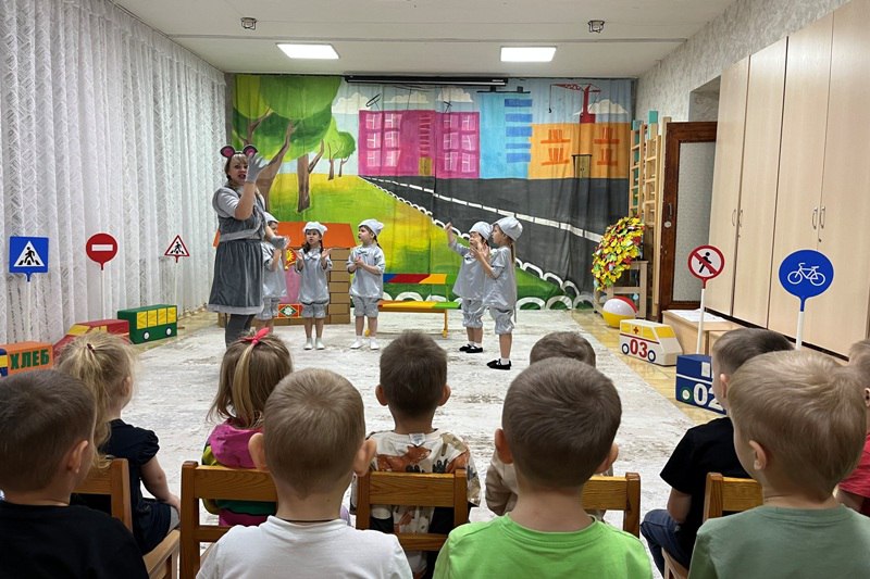 В Детском саду № 2 «Лучик» сотрудники Госавтоинспекции совместно с педагогами провели профилактическое мероприятие «В стране ПДД», где ребятам в театральной сценке показали, какие последствия могут быть при несоблюдении правил дорожной безопасности и почему нельзя играть на проезжей части. Дети узнали о правилах поведения для пешехода, пассажира в автомобиле или общественном транспорте, а также о важности световозвращающих элементов.