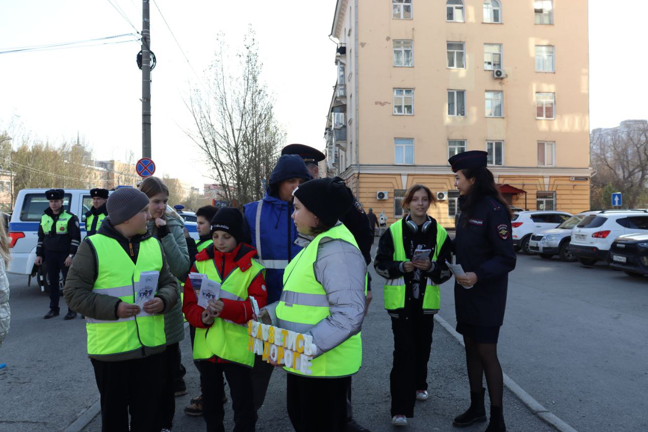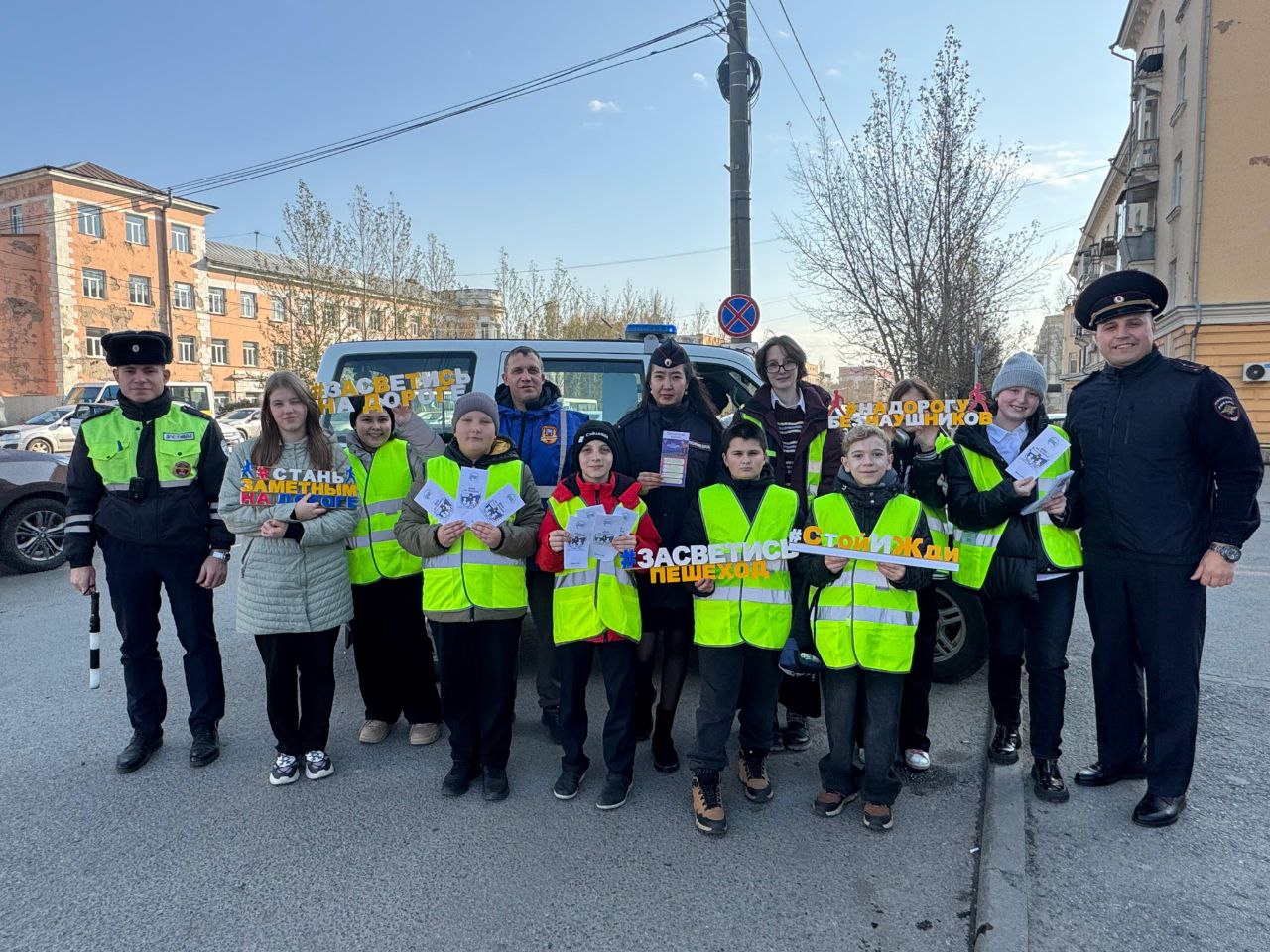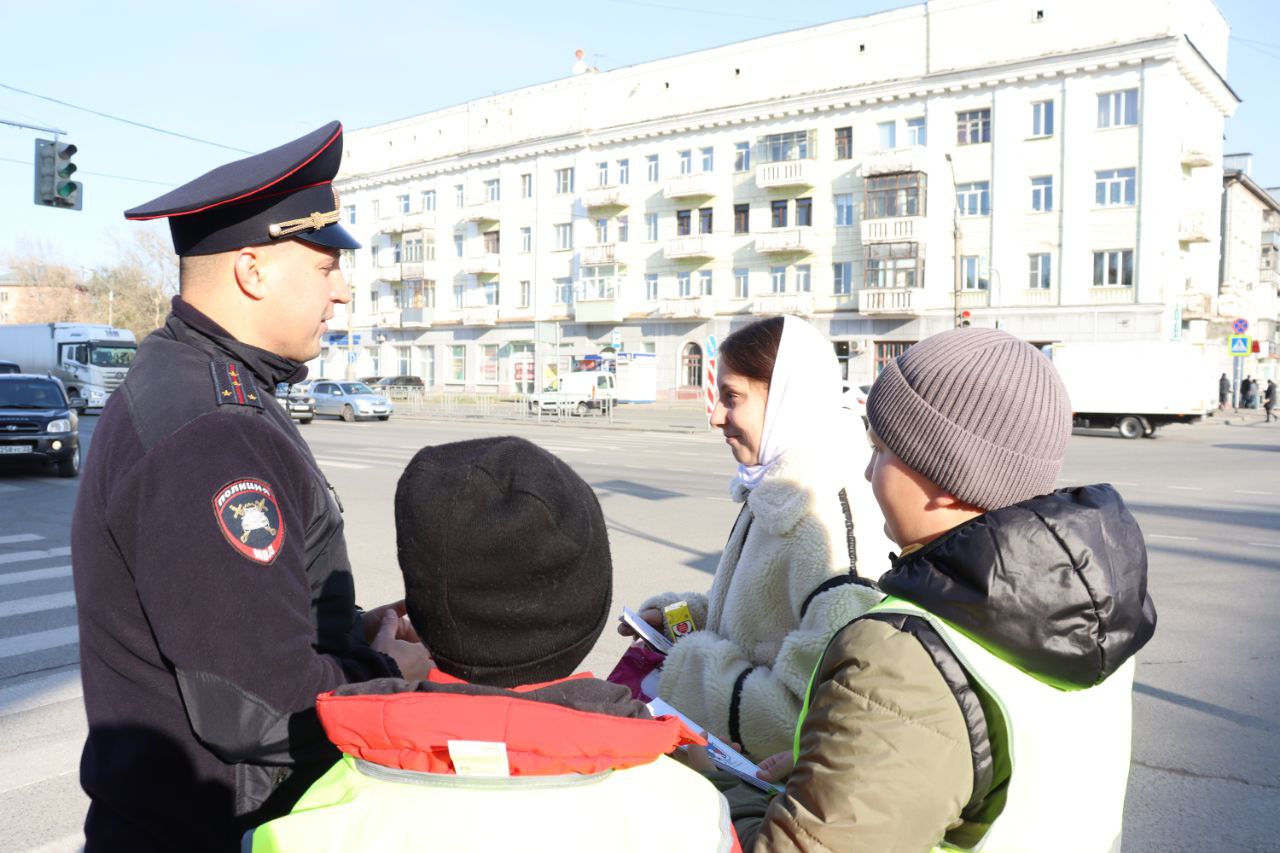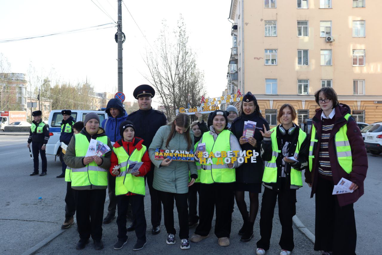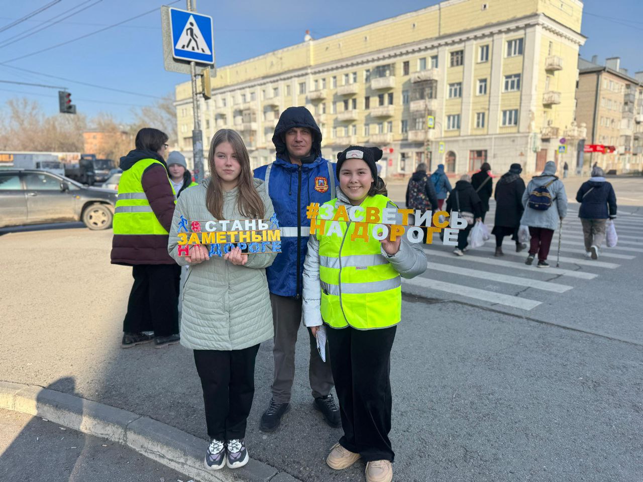 Затем школьники совместно с общественной организацией «Народная дружина «Барнаульская» приняли участие в акции «Засветись», выйдя на наиболее интенсивный перекресток города. Участники акции обратились к пешеходам, напоминая о правилах безопасного перехода проезжей части и рекомендуя использовать световозвращающие элементы на одежде в темное время суток и в условиях недостаточной видимости.