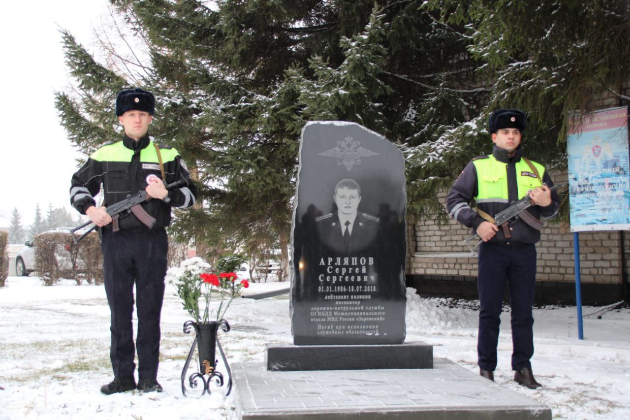 Сегодня, в День памяти погибших при выполнении служебных обязанностей сотрудников органов внутренних дел Российской Федерации в городе Заринске открыли памятник посвящённый сотруднику дорожно-патрульной службы ГИБДД МО МВД России «Заринский», лейтенанту полиции Сергею Арляпову, погибшему 18 июля 2018 года при задержании правонарушителя, который управляя автомобилем, создавал реальную угрозу жизни и безопасности граждан. В мероприятии приняли участие руководство и личный состав Межмуниципального отдела МВД России «Заринский», ветераны органов внутренних дел, представители органов власти, общественности и духовенства. Присутствующие почтили память погибшего сотрудника минутой молчания и возложили цветы к памятнику.