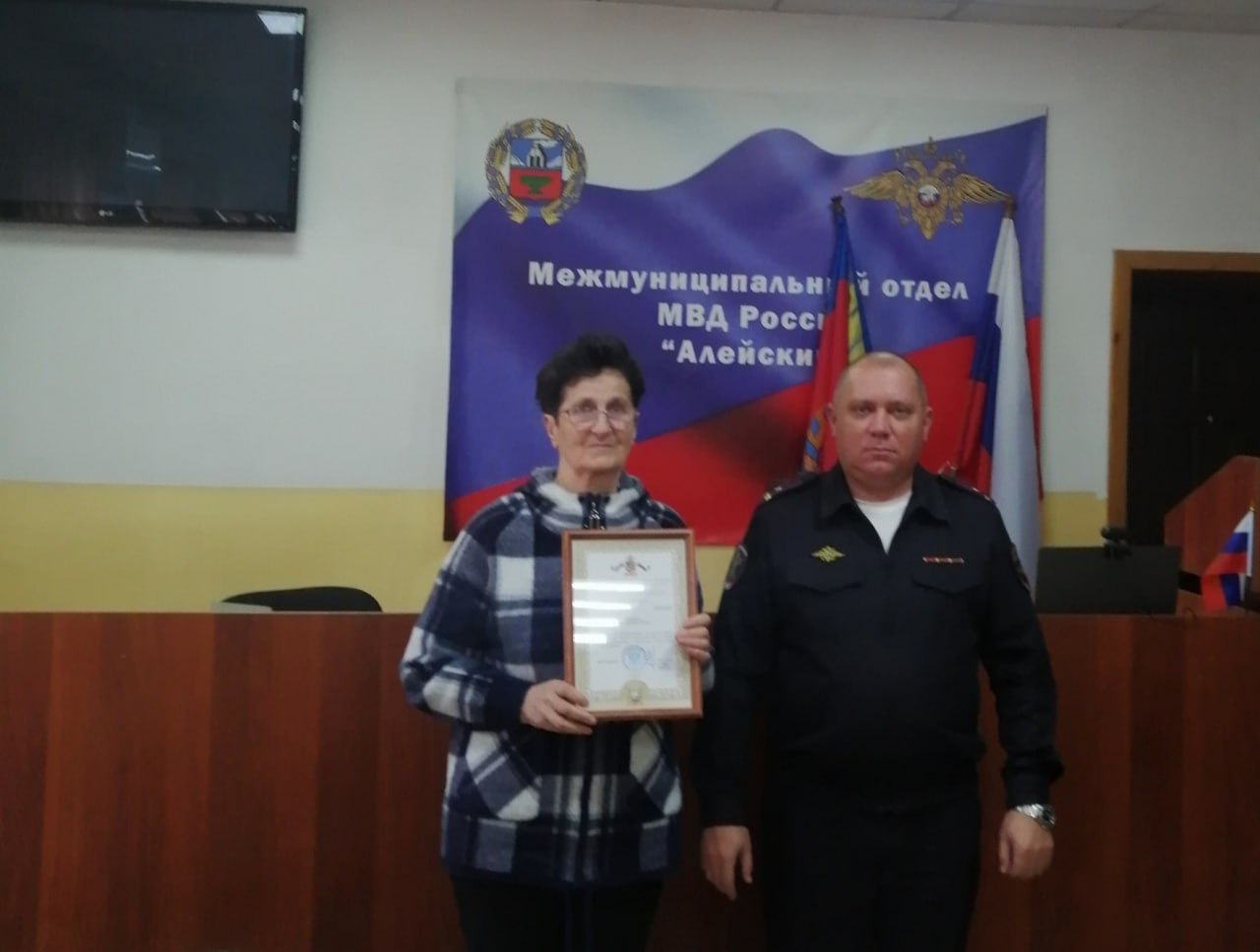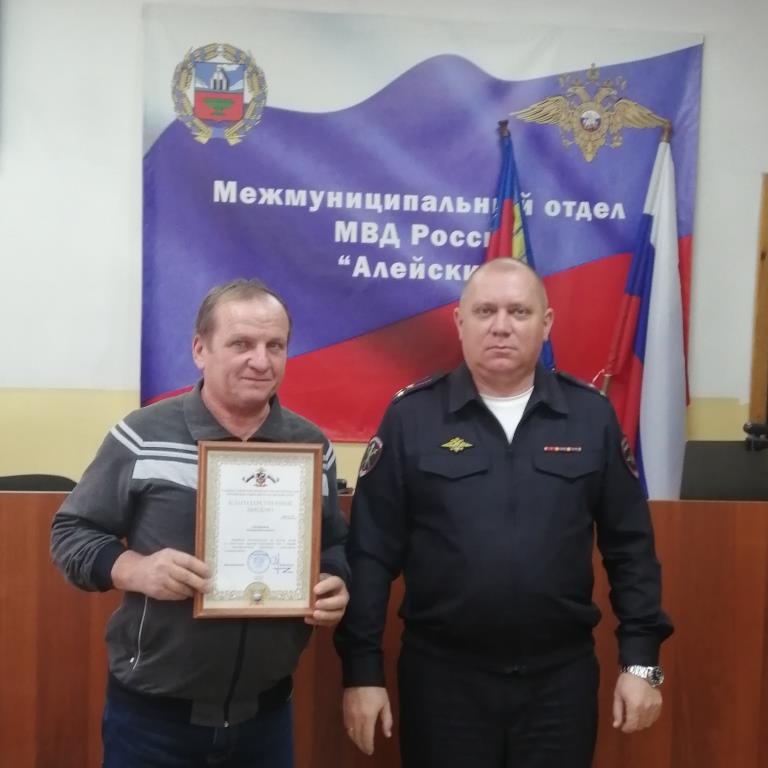 Начальник МО МВД России «Алейский» Д.В.Марченко вручил Благодарственные письма Главного управления МВД России по Алтайскому краю за личный вклад и содействие органам внутренних дел в борьбе с преступностью, укрепление законности и правопорядка активным членам народной дружины из села Плотава Наталье Клетухиной и Евгению Жукову.