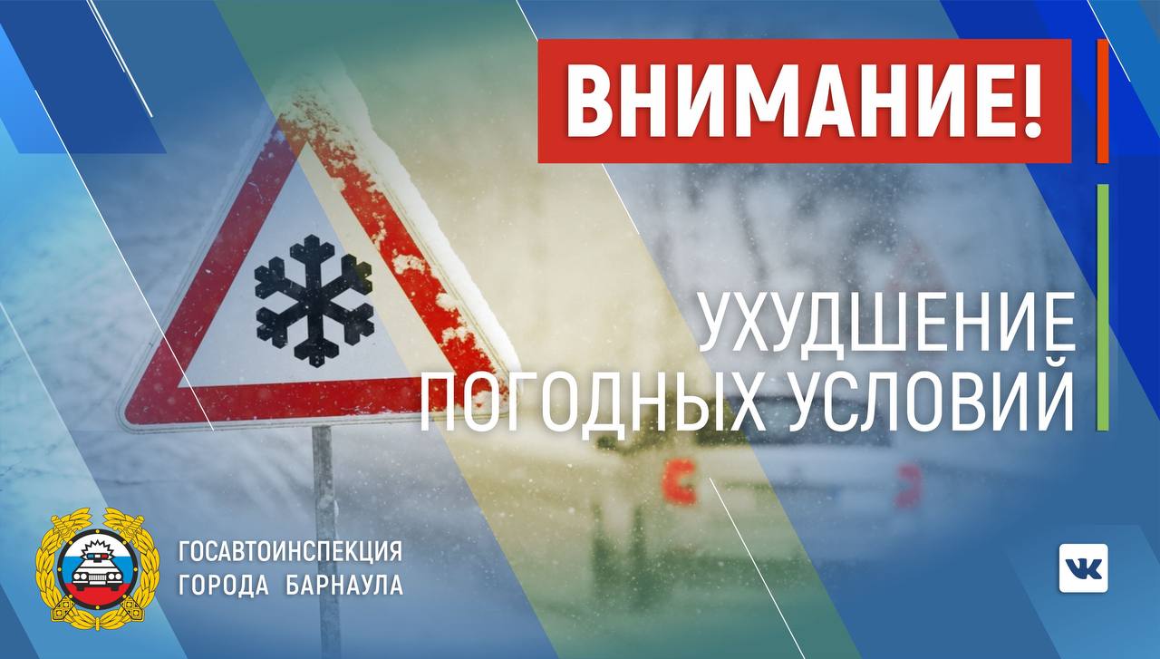 В связи с ухудшением погодных условий, а именно в связи с усилением ветра, снегопадом и дорожной скользкостью Госавтоинспекция города Барнаула обращается к участникам дорожного движения