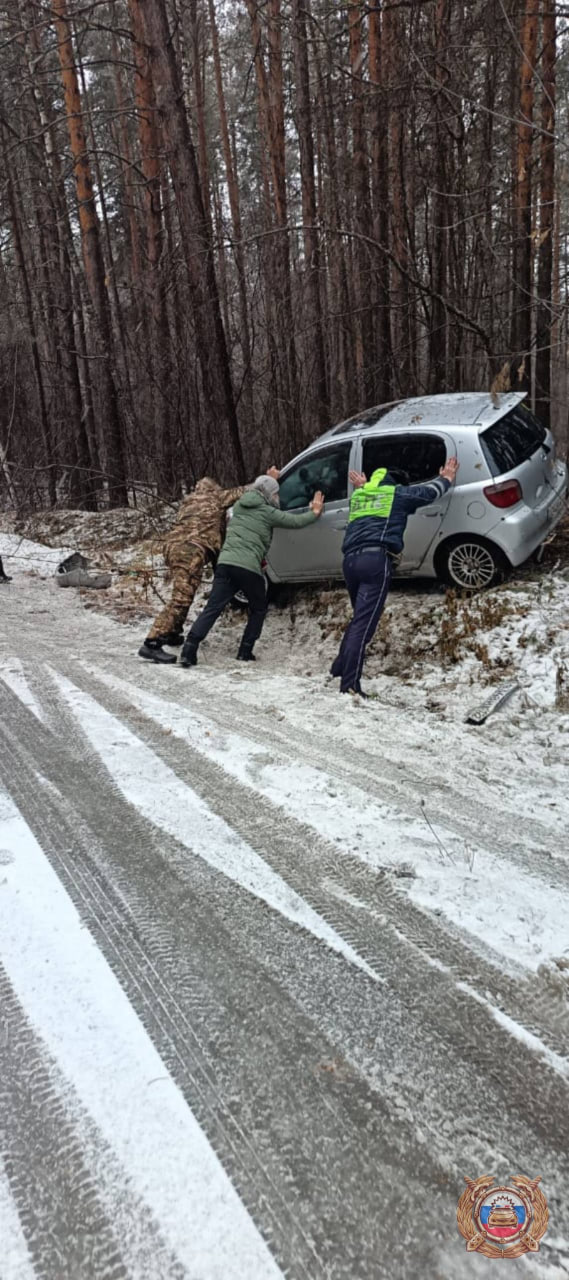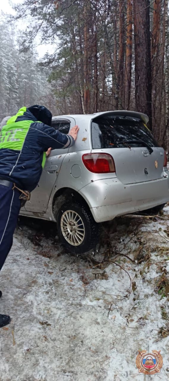 Помогли женщине-водителю, съехавшей с загородной дороги в условиях непогоды, автоинспекторы в Алтайском крае