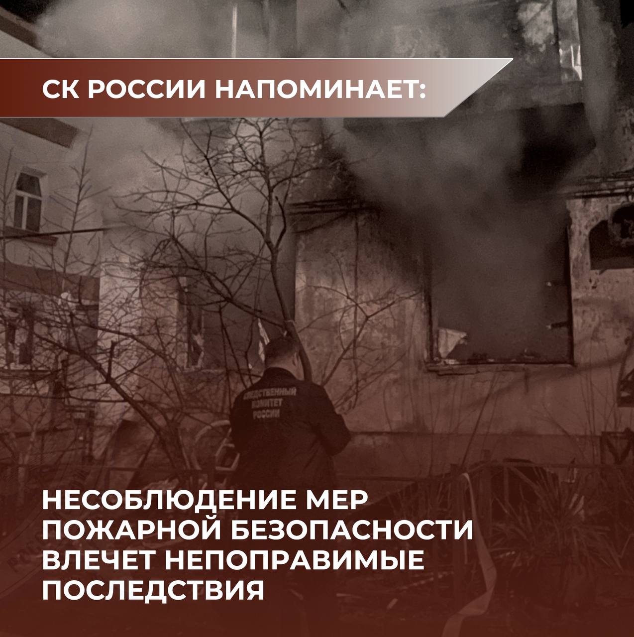 СК России обращает внимание на необходимость соблюдения мер пожарной безопасности