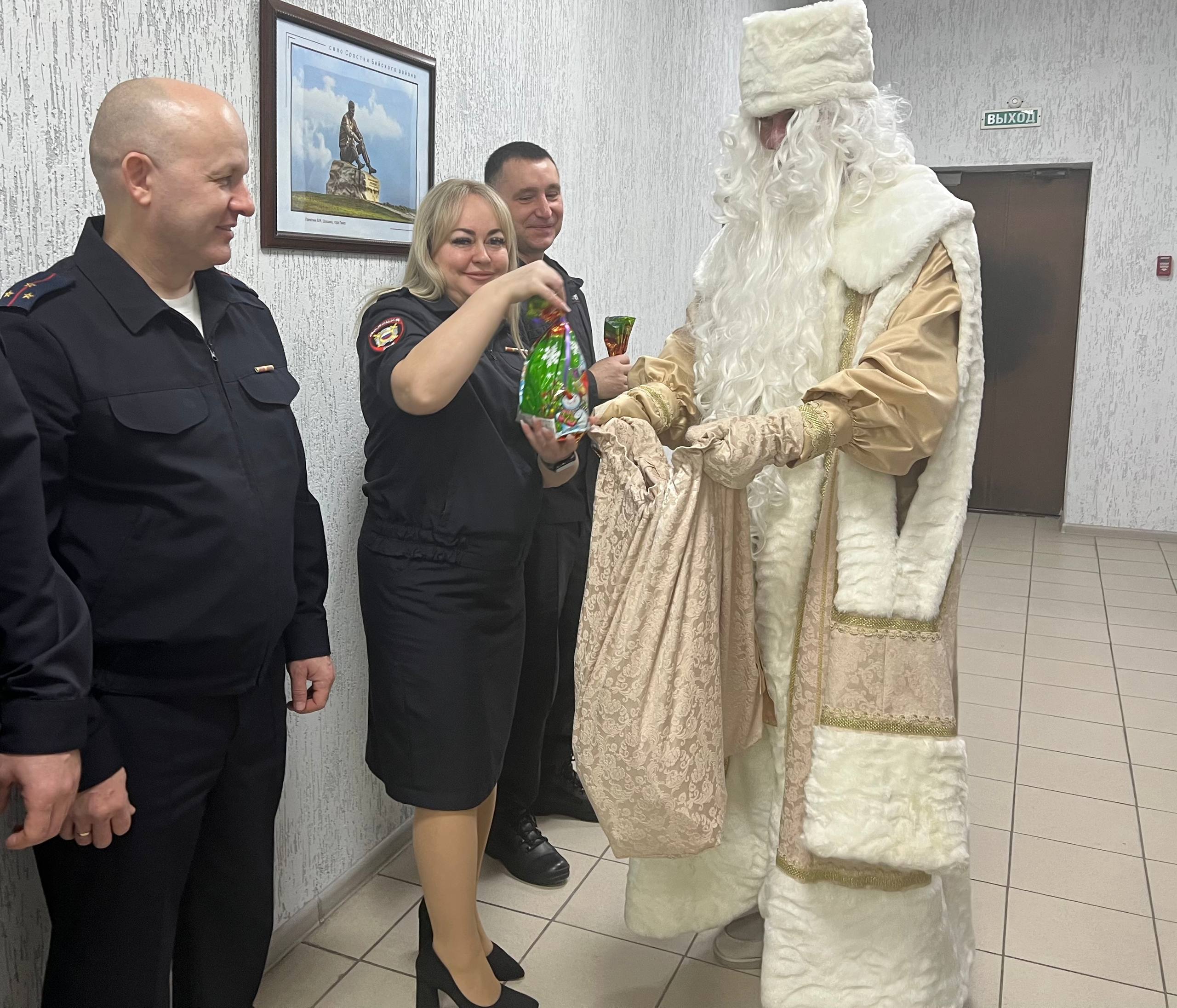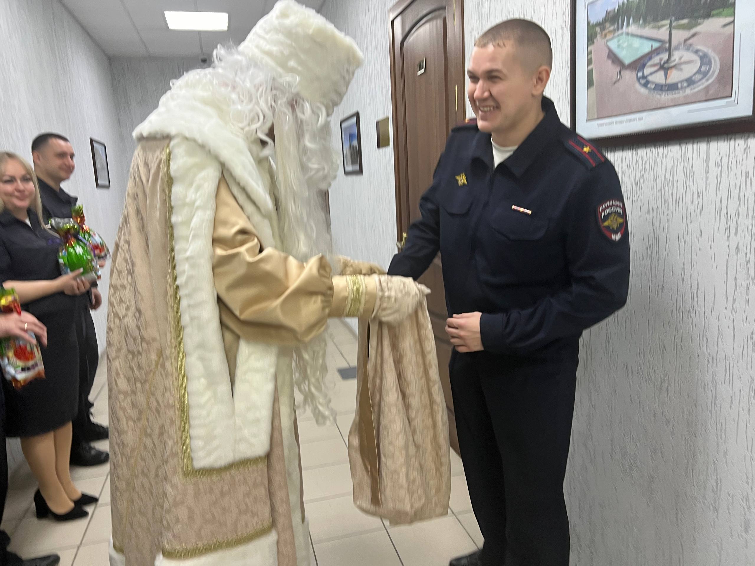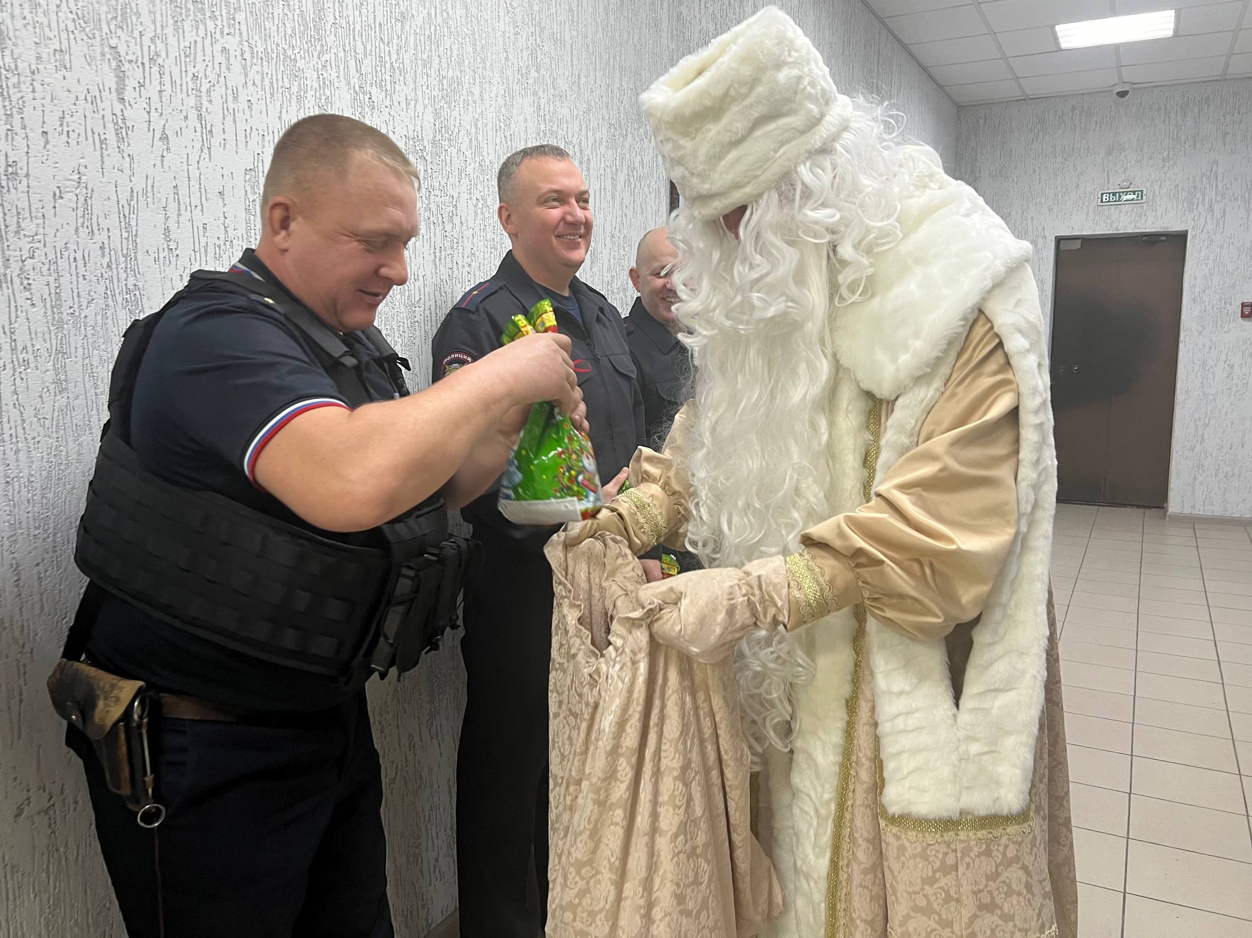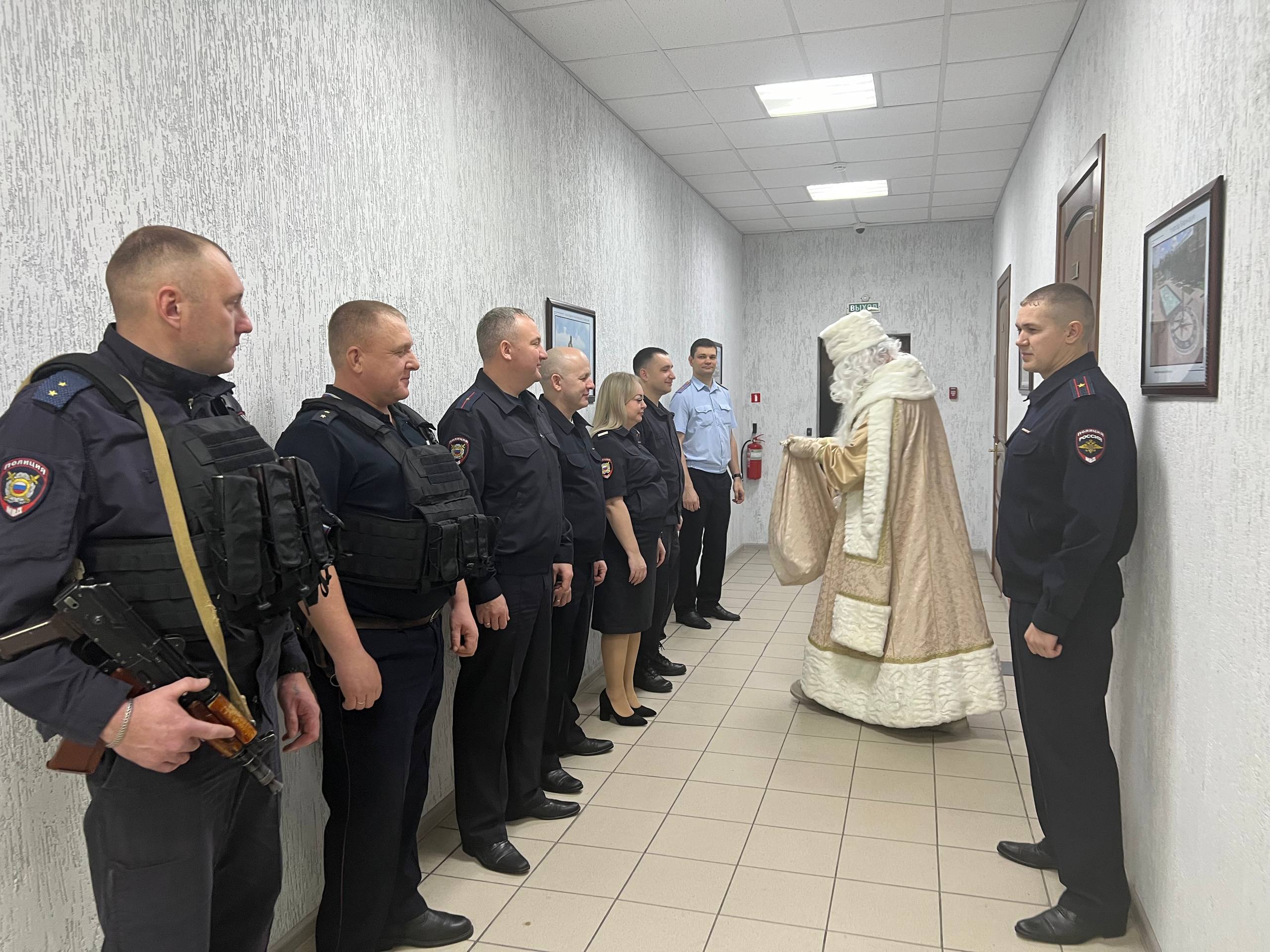 Визит главного новогоднего волшебника к полицейским на службу - знак благодарности тем, кто в эти праздничные дни стоит на страже порядка и безопасности граждан.