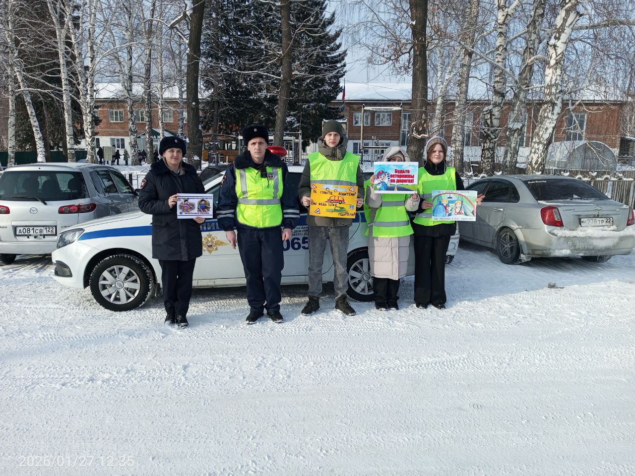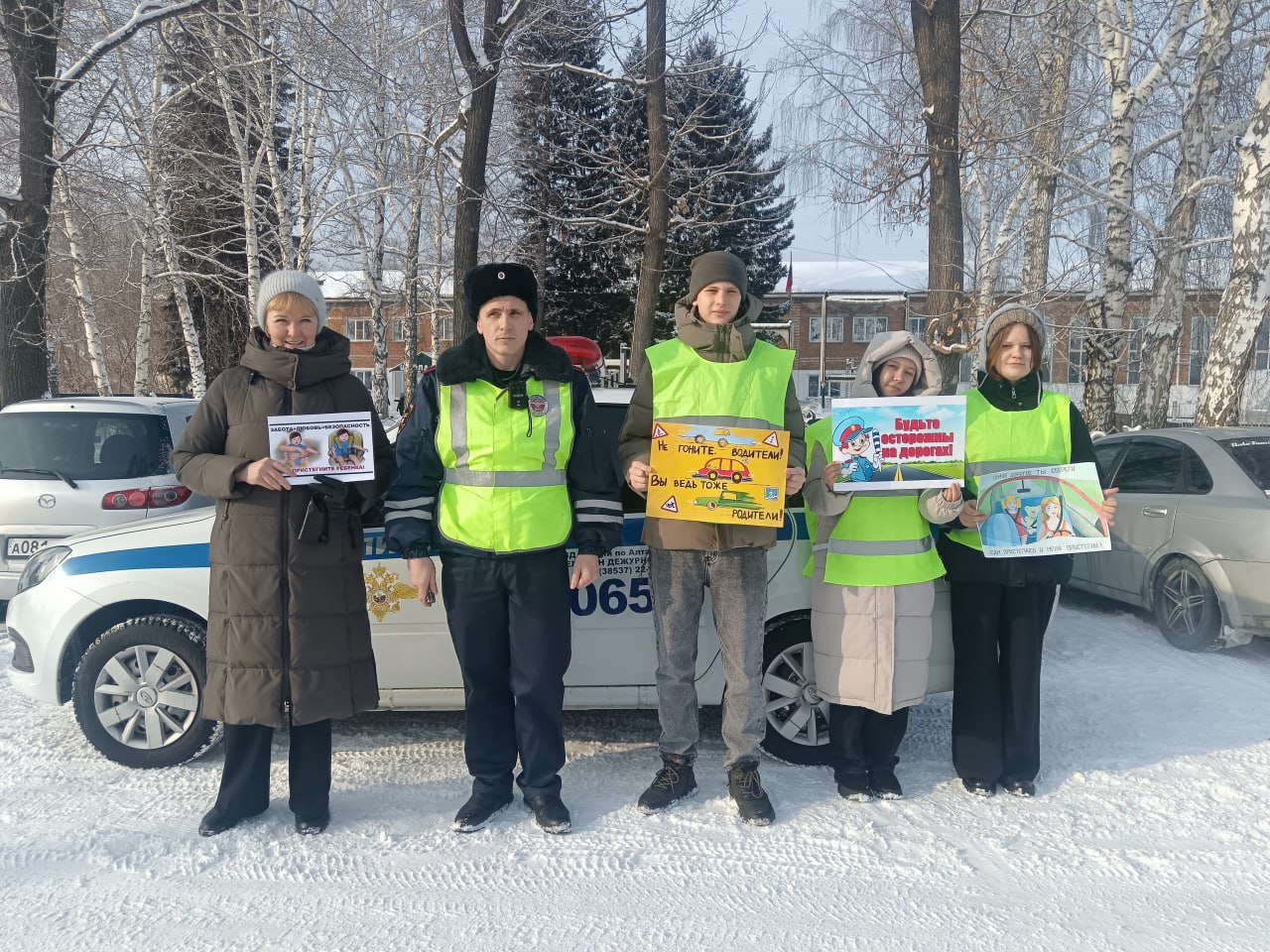 Сотрудники Госавтоинспекции совместно с юными инспекторами движения Алтайской школы №2 Алтайского района провели профилактическую акцию «Не гоните, водители! Вы ведь тоже родители!», направленную на предупреждение аварийности, в том числе с участием детей.
