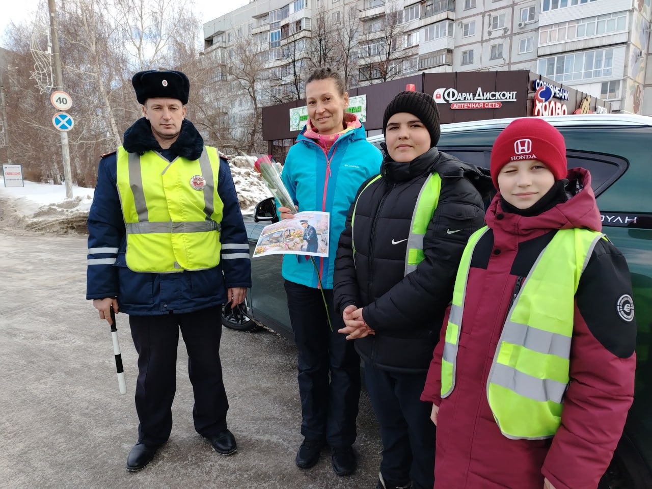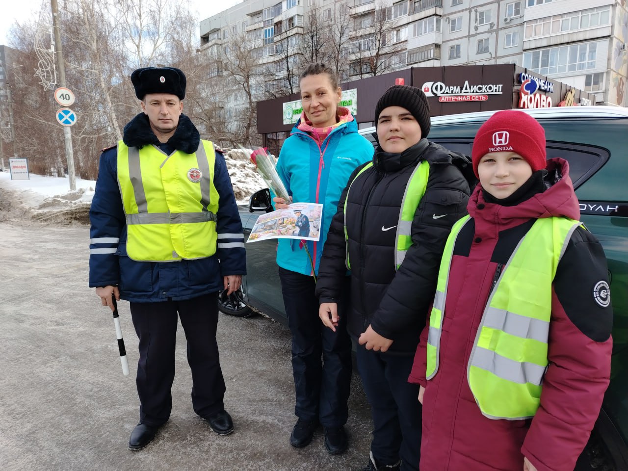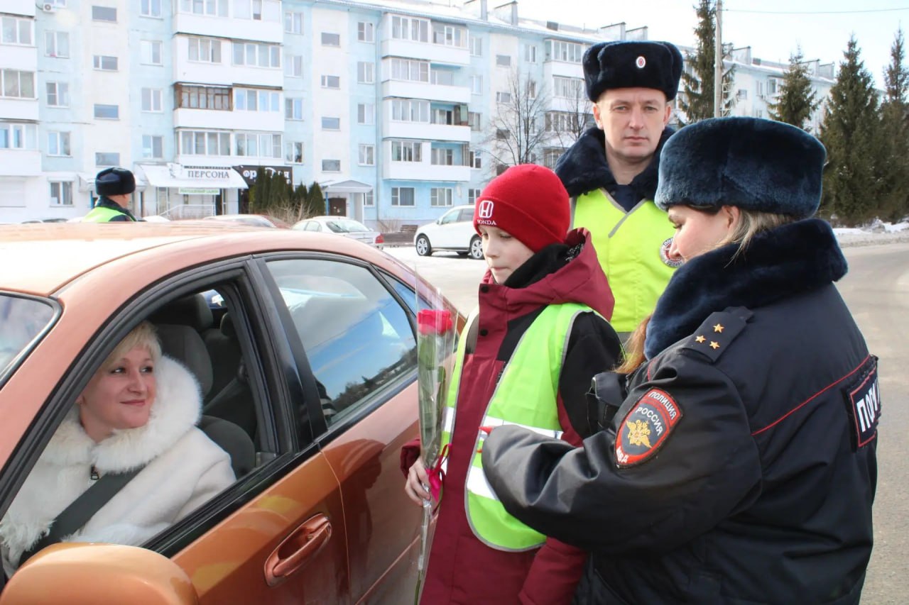 Белокурихинская Госавтоинспекция и отряд ЮИД поздравили автоледи с наступающим праздником 8 марта