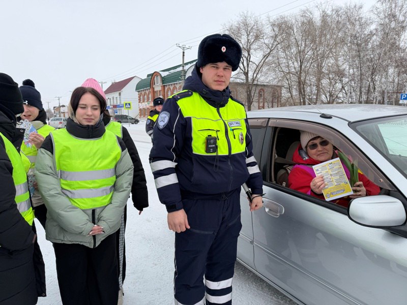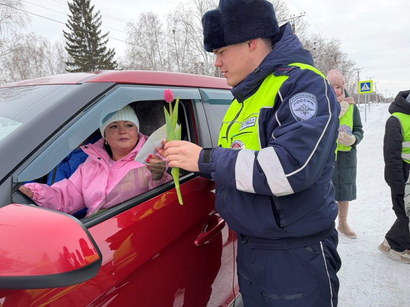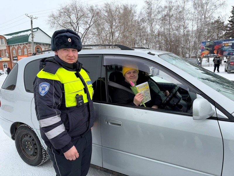 В преддверии Международного женского дня сотрудники Госавтоинспекции Топчихинского района совместно с ЮИД «Дорожный патруль» провели акцию «Цветы для автоледи». Инспекторы останавливали на дорогах машины с женщинами за рулем и вручали им цветы, поздравляя с 8 Марта, а юные инспекторы движения вручали открытки, сделанные своими руками.