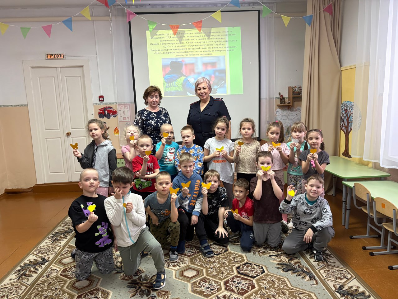 Инспектор рассказала детям о правилах безопасного перехода дороги. Особое внимание было уделено важности применения световозвращающих элементов, которые повышают видимость пешеходов в темное время суток. Также ребята посмотрели видеоролики с примерами дорожных ловушек, разобрав при этом все опасные ситуации.