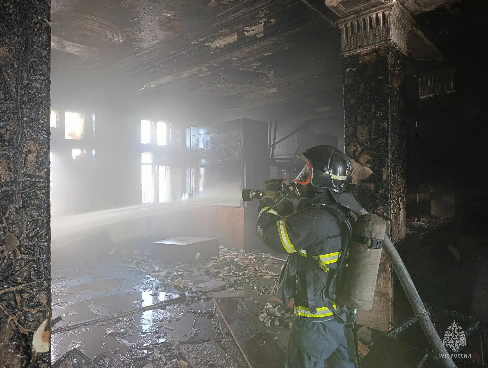Пожар ликвидирован на площади около 50 квадратов: горели пол и стены на первом этаже.