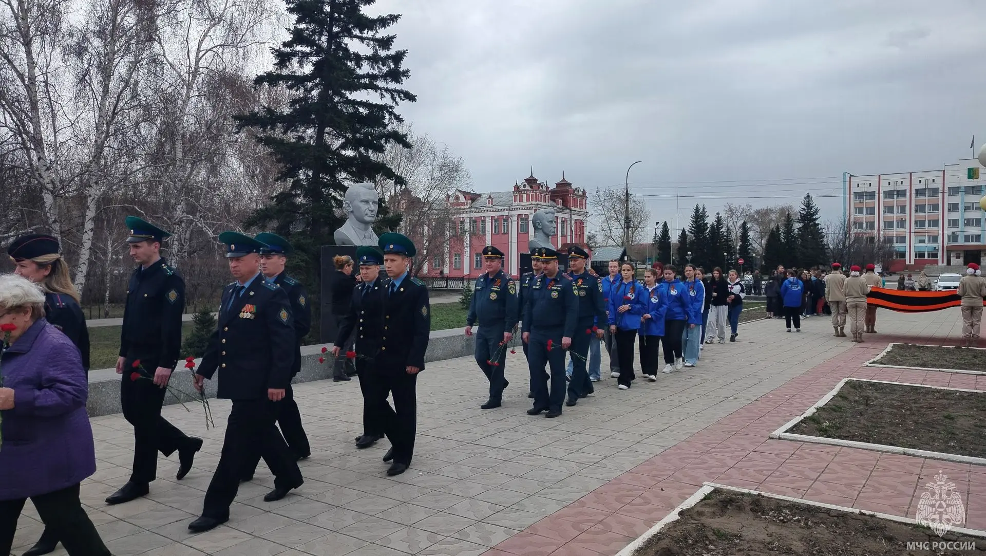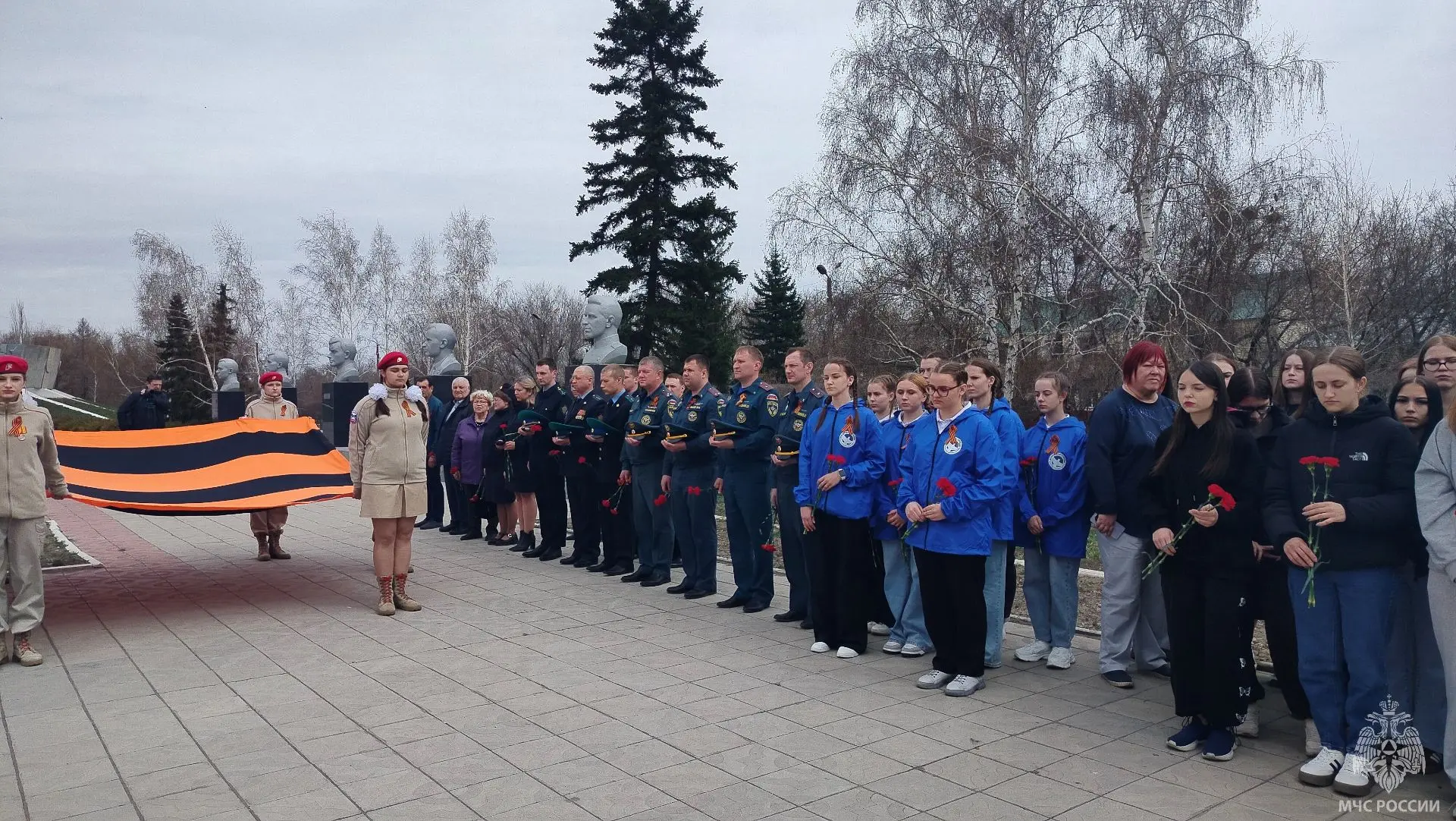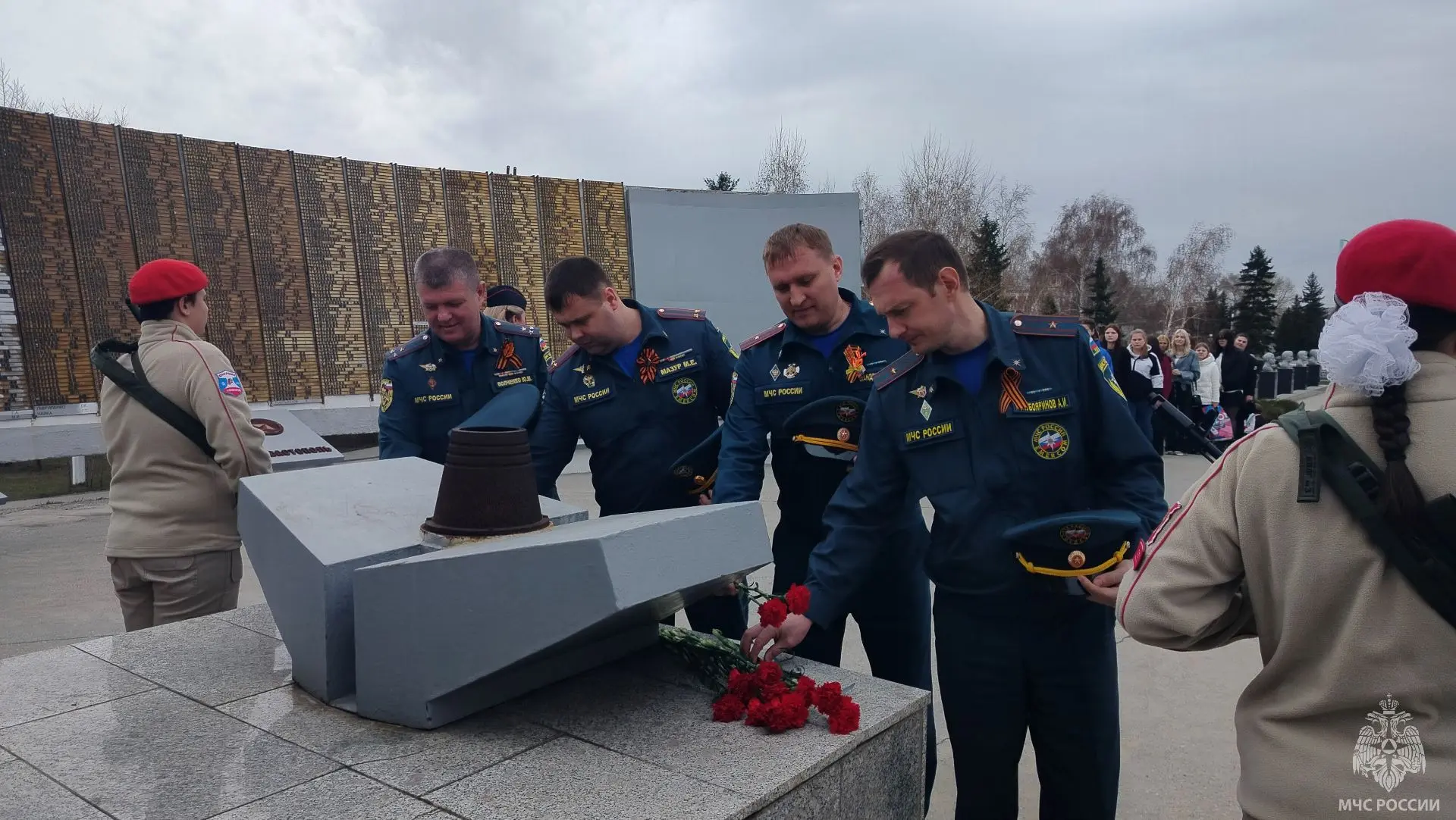 А личный состав 9-го пожарно-спасательного отряда чрезвычайного ведомства на одном из памятных мест города Славгорода возложил красные гвоздики и отдал воинское приветствие в память павших воинов давно минувших военных лет.