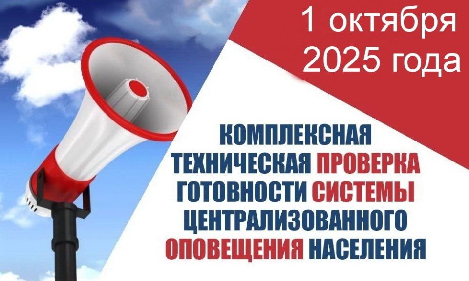 1 октября 2025 года с 10.30 до 11.00 будет проводиться комплексная проверка готовности региональной, муниципальной и локальных систем оповещения с запуском оконечных средств оповещения (электросирен и уличных громкоговорителей), замещением эфира...