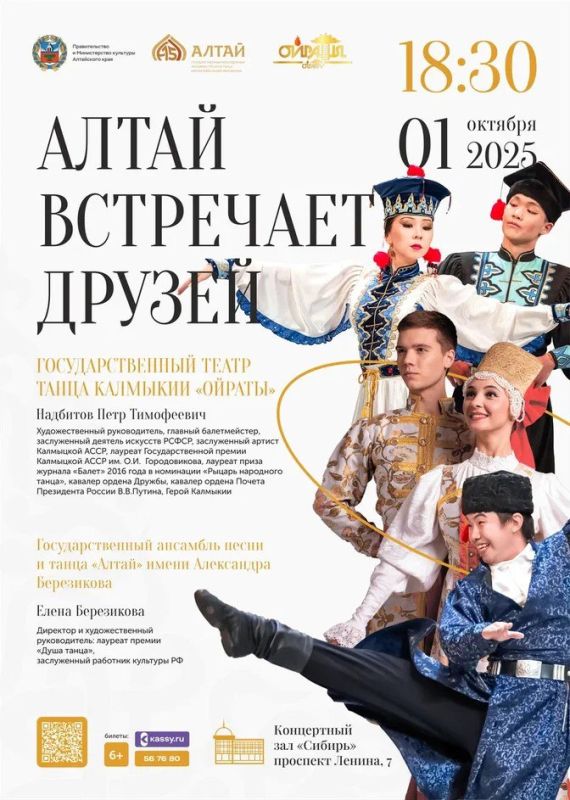 В преддверии 15-летнего юбилея Государственный молодежный ансамбль песни и танца «Алтай» им. А.Ф. Березикова встречает Государственный театр танца Калмыкии «Ойраты» - популярный и любимый зрителем творческий коллектив.1 октября на сцене концертного...
