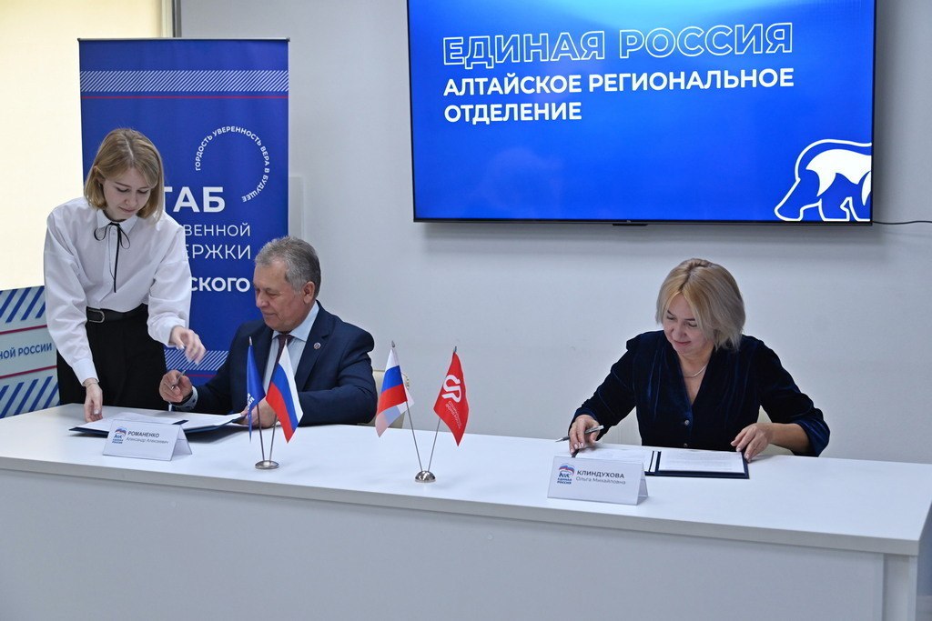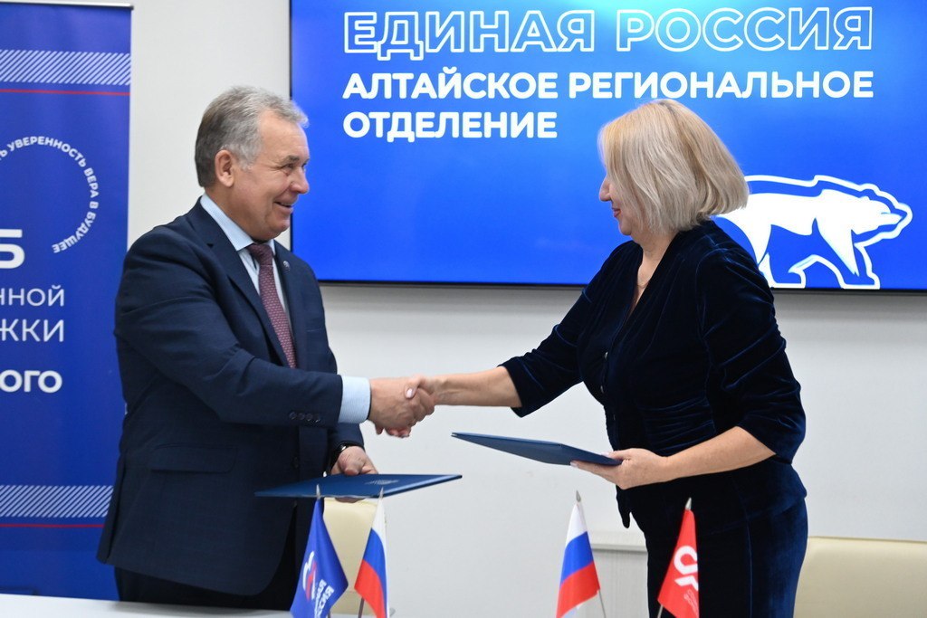 1 октября в Барнауле состоялось подписание соглашения о взаимодействии между Алтайским региональным отделением партии «Единая Россия» и Отделением Фонда пенсионного и социального страхования России.