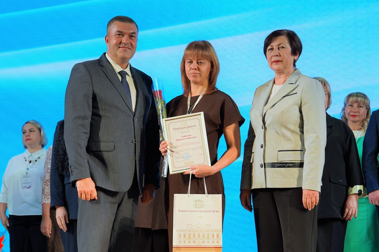 Всего почетные награды получили 78 педагогов из Барнаула. Из них 31 человек был удостоен ведомственных наград Министерства просвещения РФ, а 47 – муниципальных наград администрации города и Барнаульской городской Думы. Среди награжденных – представители детских садов, школ, системы дополнительного образования и профильного комитета.