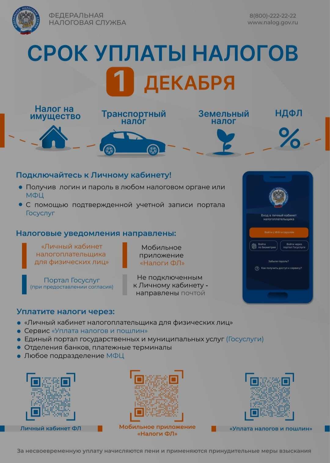 Напоминаем, что в текущем году оплата имущественных налогов и налога на доходы физических лиц должна быть произведена не позднее 1 декабря.