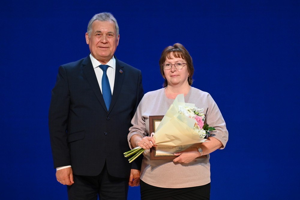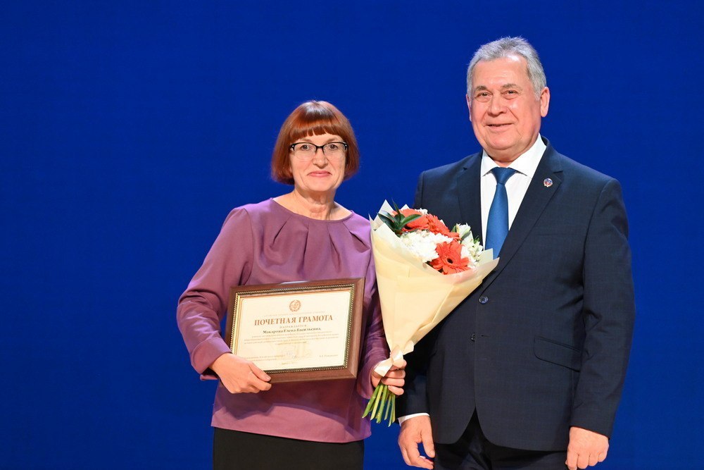 Спикер АКЗС поздравил учителей и вручил им награды краевого парламента. За многолетний добросовестный труд и высокий профессионализм Почетной грамотой АКЗС были награждены преподаватель Алтайского промышленно-экономического колледжа Наталья Лихачева, учитель Рубцовской общеобразовательной школы-интерната №1 Валентина Веревкина, директор лицея №112 города Барнаула Геннадий Гаврин и учитель Бийского лицея-интерната Елена Макарова.