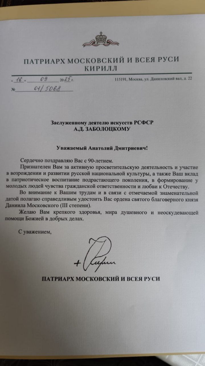 Кинооператор Анатолий Заболоцкий, работавший много лет с Василием Шукшиным, удостоен высокой церковной награды