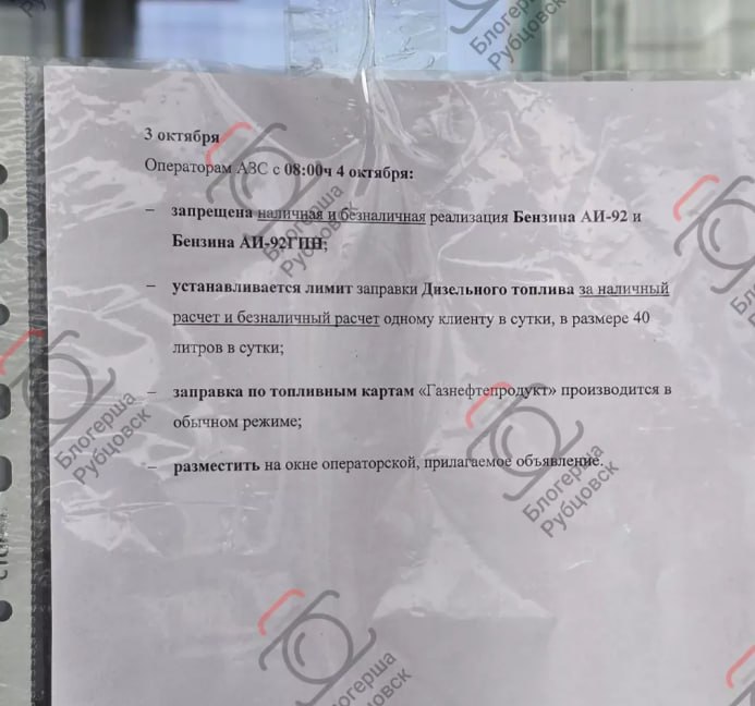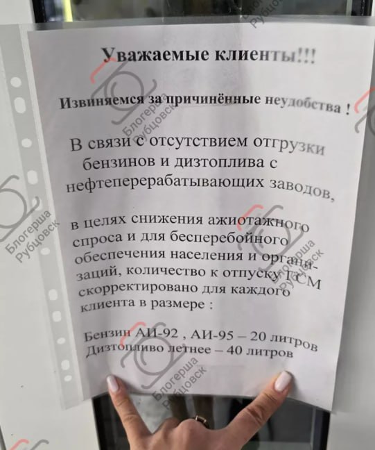 Отпуск топлива ограничили на некоторых АЗС в Рубцовске. Снимки объявлений, которые появились на станциях, опубликовал telegram-канал "Блогерша Рубцовск".