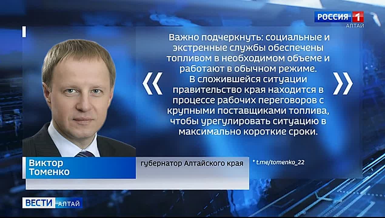 Губернатор Виктор Томенко прокомментировал ситуацию с бензином в Алтайском крае.