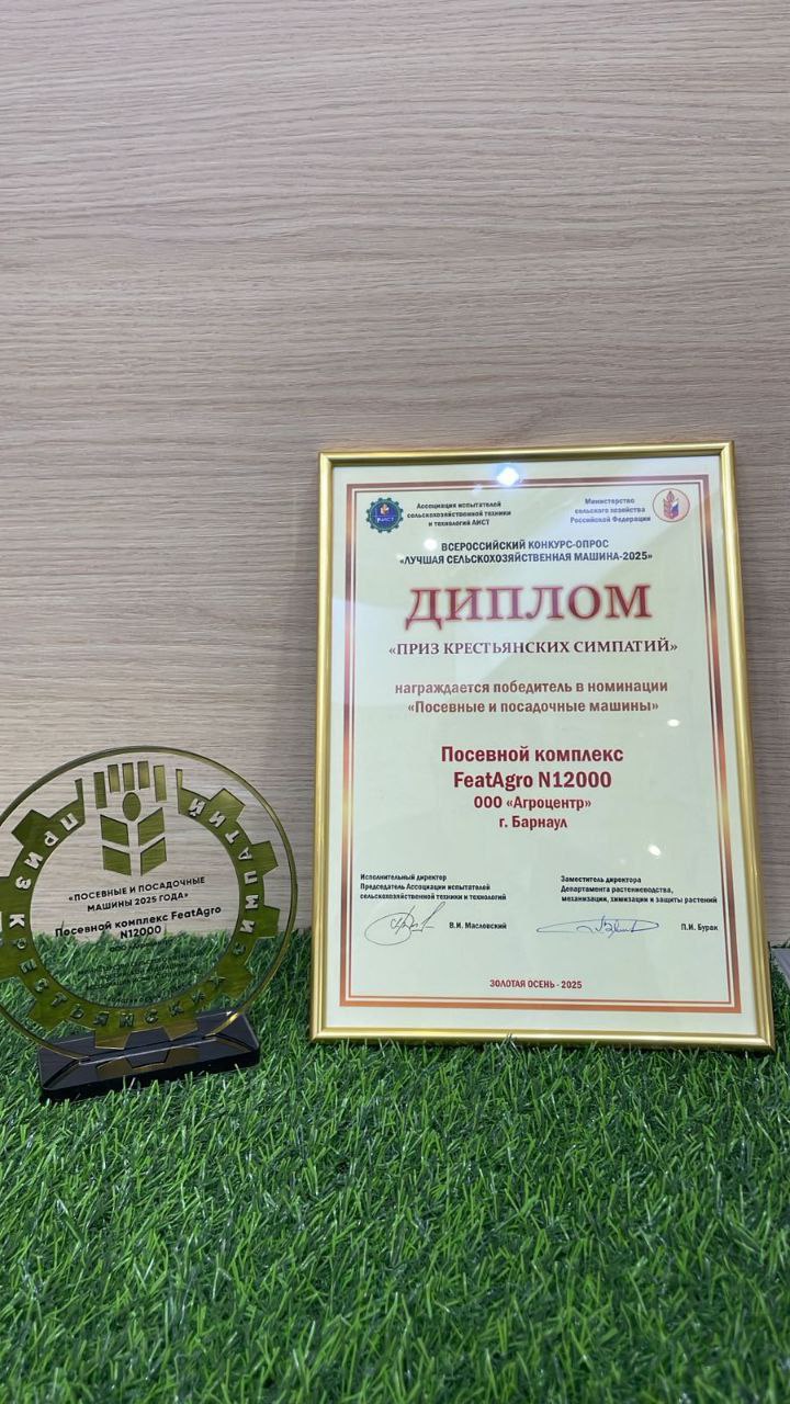В номинации «Техника для посева» победителем признана компания «Агроцентр» из Алтайского края с посевным комплексом FeatAgro серии N-12 000. На конкурс в этом сегменте было представлено 162 единицы техники и алтайская стала лидером!