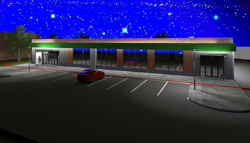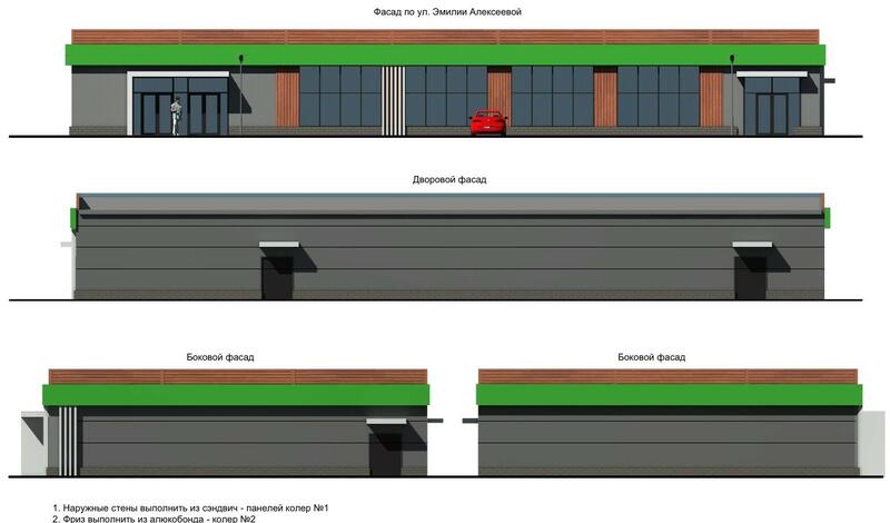 Над ним работала мастерская "АртПроект". По сути, это будет типовое одноэтажное здание из металлического каркаса с облицовкой сэндвич-панелями в теплых бежево-коричневых тонах. Планируют сделать парковку, а также ночную подсветку.
