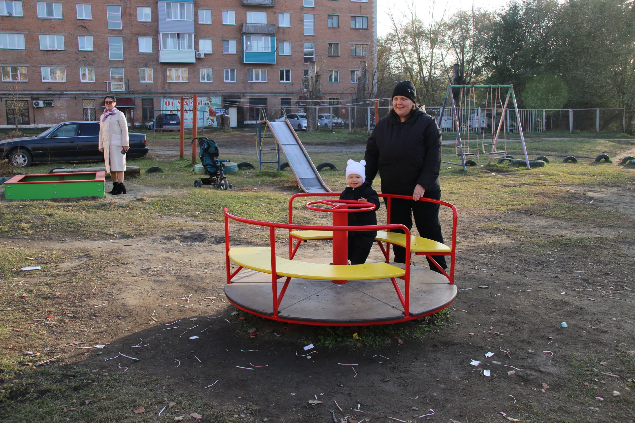 На средства гранта и силами местных жителей начато обустройство детской площадки во дворе по улице Мирная. Установлены песочница, детская карусель, спортивный комплекс для активных игр.