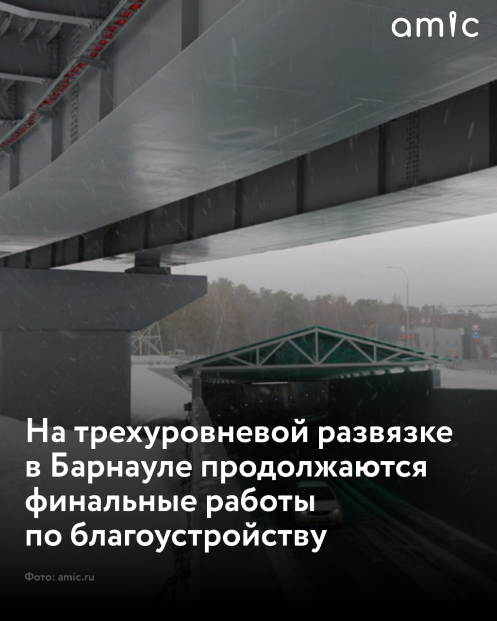 В Барнауле полностью открыли движение по новой трехуровневой развязке – сейчас транспорт идет без задержек и пробок. Однако рядом с объектом все еще ведутся финальные работы: подрядчики устанавливают пешеходные светофоры и готовят площадки для новых остановочных павильонов.