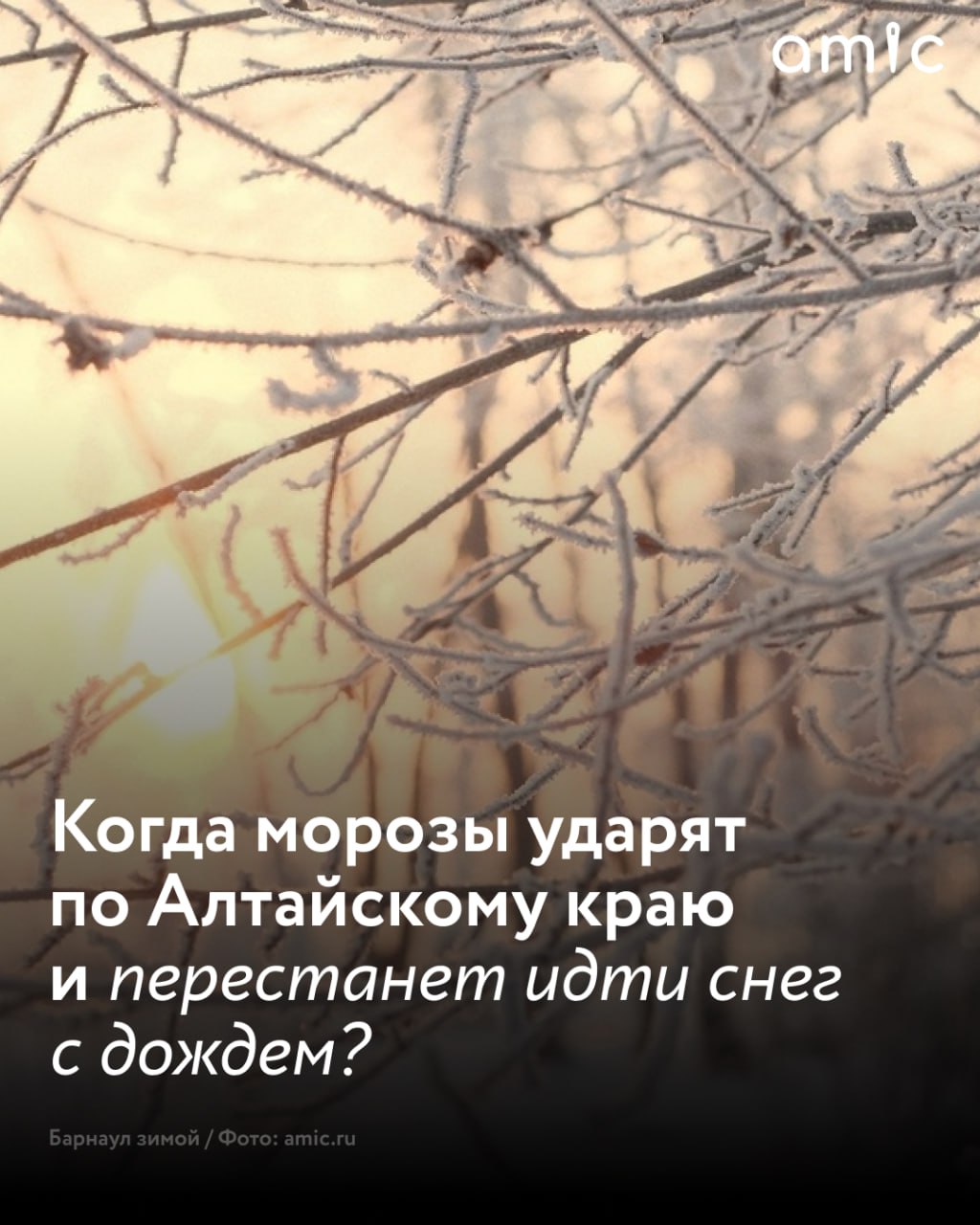14–16 ноября Алтайский край будет находиться под влиянием антициклона. Ожидается, что этот период пройдет преимущественно без осадков. Ночью температура воздуха составит от -8 до -13 градусов, а в предгорьях опустится до -18. Дневная температура также будет колебаться от -1 до -6...-7 градусов.