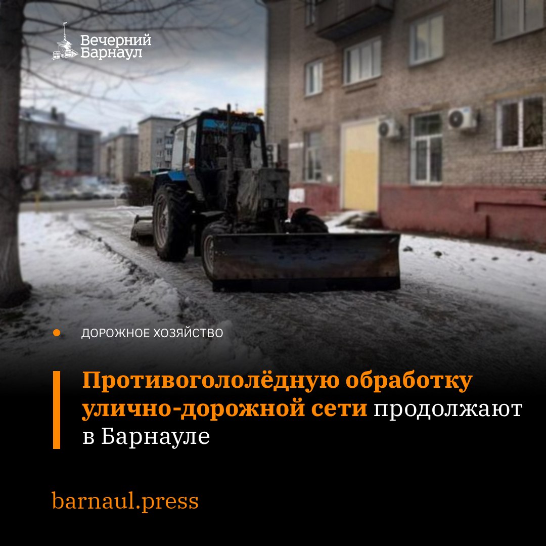 Подмерзание поверхностей дорог и тротуаров наблюдается на территории Барнаула в связи с похолоданием. Для обеспечения безопасности передвижения автомобилей и пешеходов специалисты ведут противогололёдную обработку.