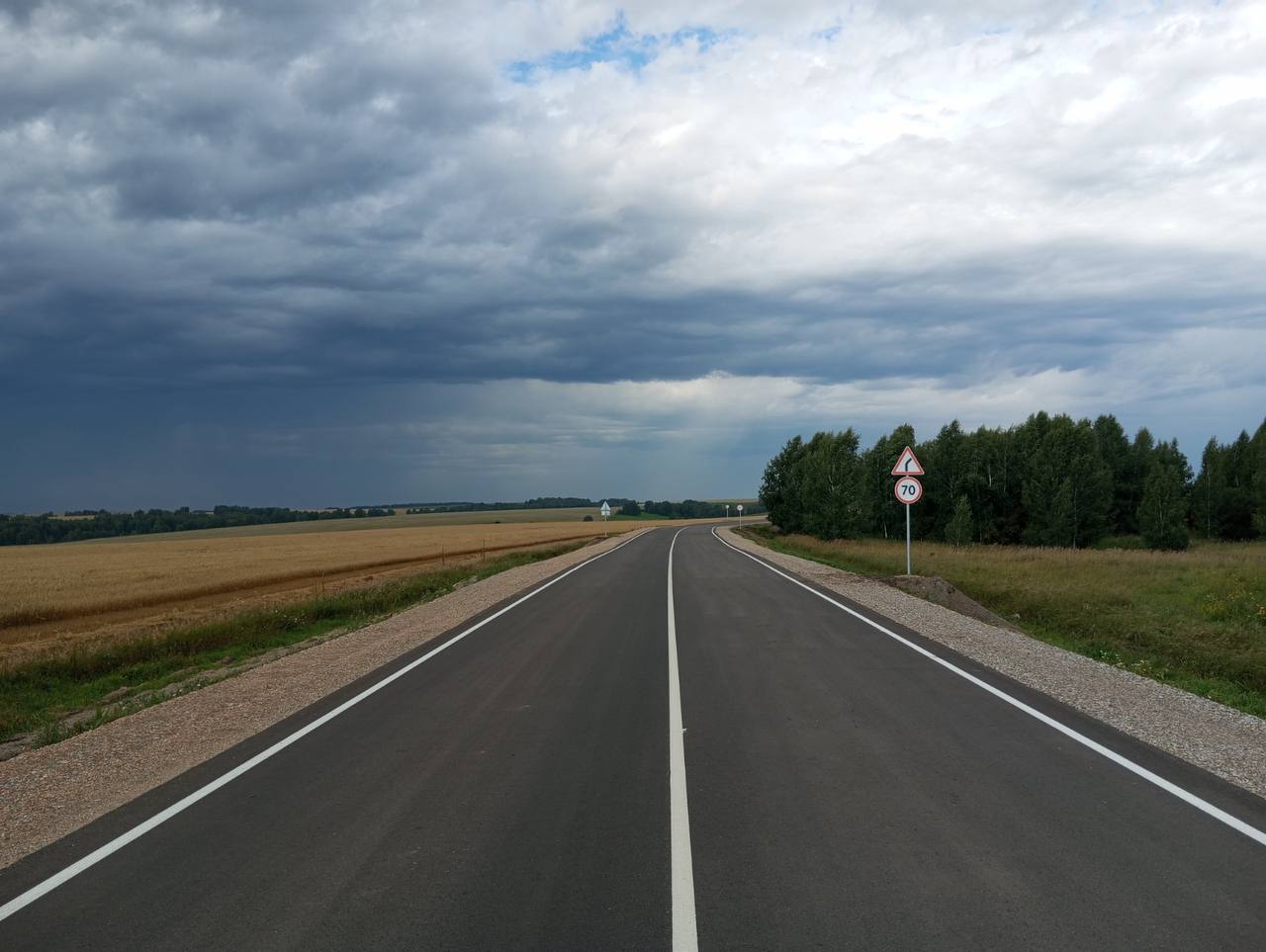 На объекте выполнили срезку изношенной дорожной одежды, устроили основание из щебеночно-песчаной смеси, произвели регенерацию существующего покрытия методом холодного ресайклинга, что позволит увеличить срок службы полотна. Также уложили нижний и верхний слои асфальтобетонного покрытия, укрепили обочины, нанесли разметку и установили знаки.