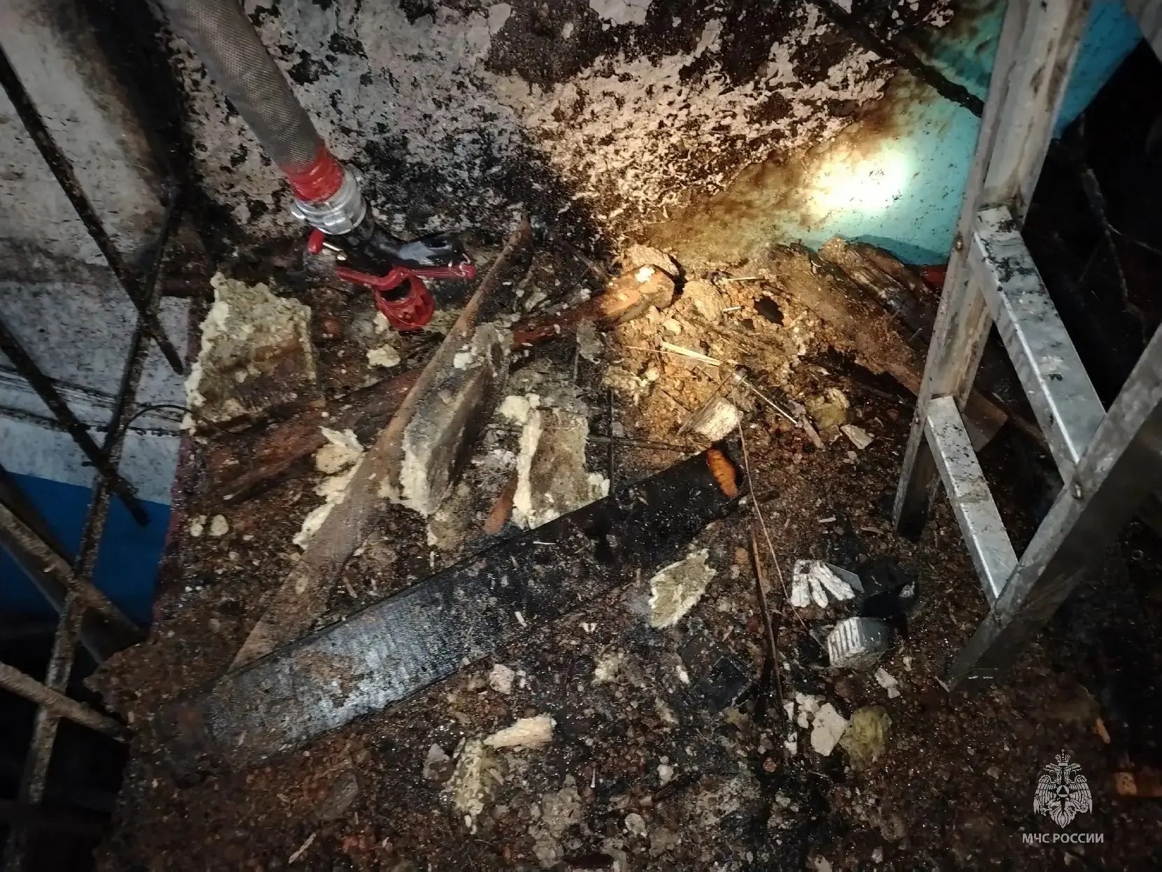 Возгорание произошло вчера на лестничной клетке второго этажа двухэтажного дома.