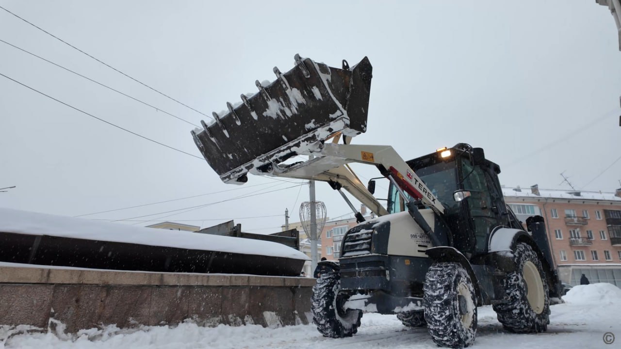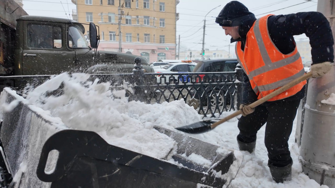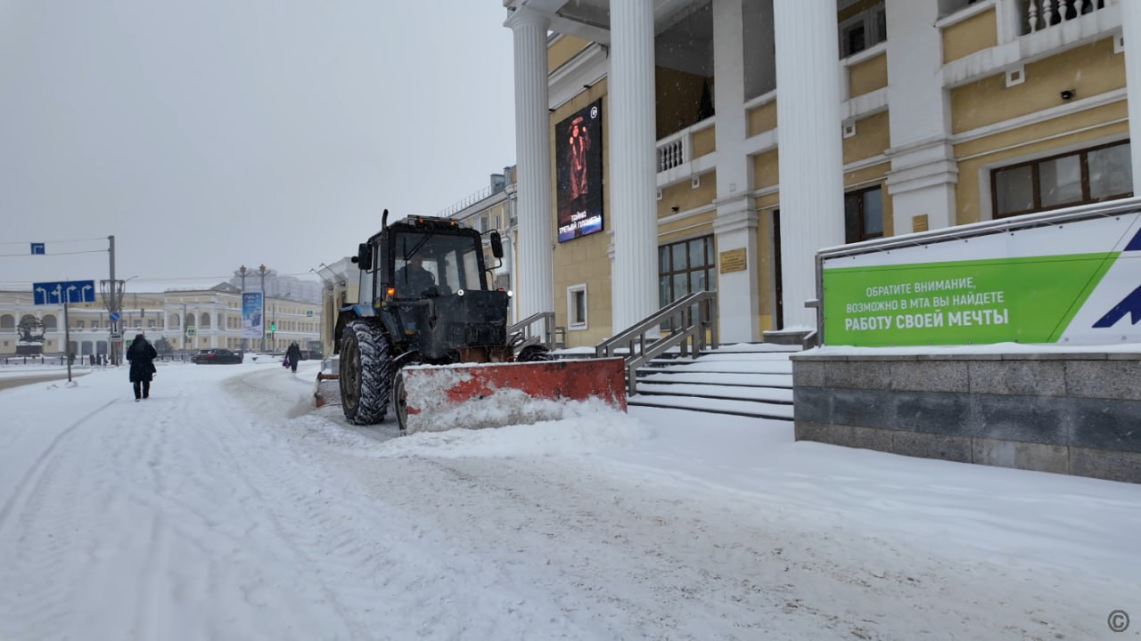 Дорожная служба чистит дороги и тротуары от снега