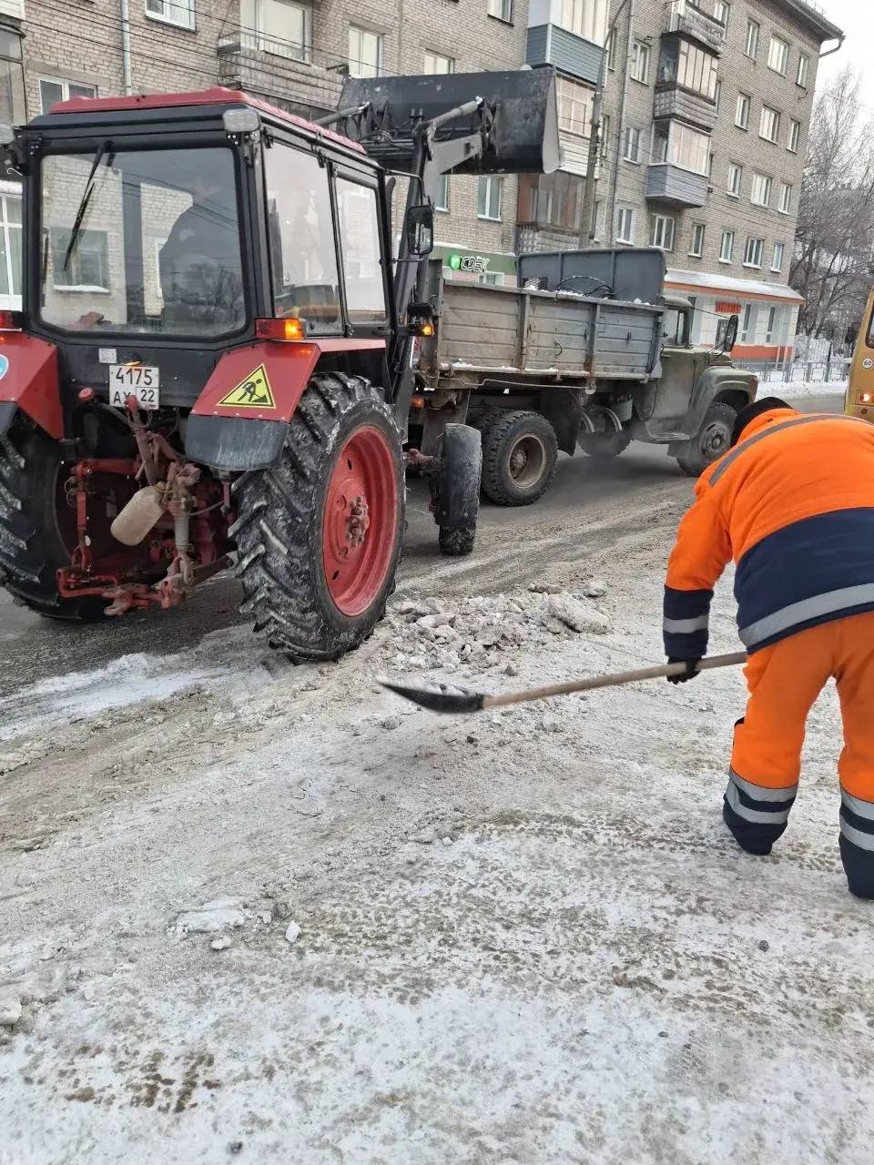 Очистка и прометание тротуаров от снега проводится на улицах Власихинской, Юрина, Сергея Ускова, Сизова, Цеховой, Сиреневой, Лазурной, 10 и 11 Западных, Максима Горького, проезде Северном Власихинском, проспекте Калинина. Кроме того, очищаются дороги в поселках Гоньба, Березовка и Докучаево.