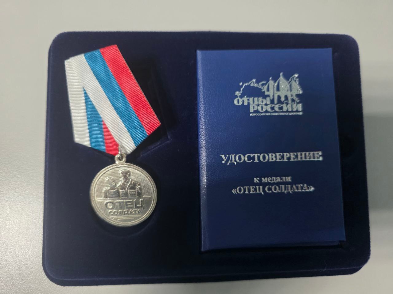 Медаль «Отец солдата» учреждена на основании Федерального закона «Об общественных объединениях» и является наградой Всероссийского общественного движения «Отцы России». На ее лицевой стороне - силуэты отца и сына – символ преемственности поколений и верности своему долгу, на оборотной стороне – слова признательности родителям, достойно воспитавшим защитников Отечества.