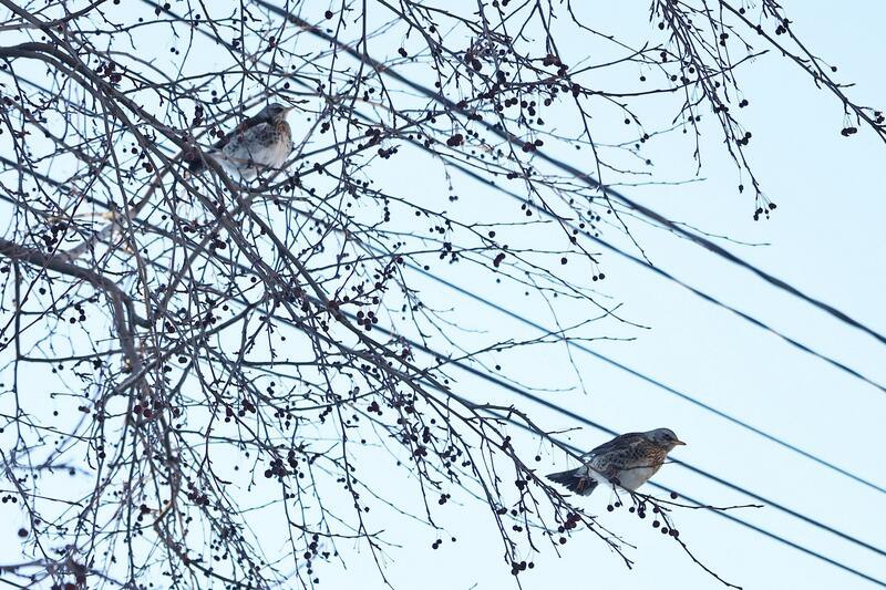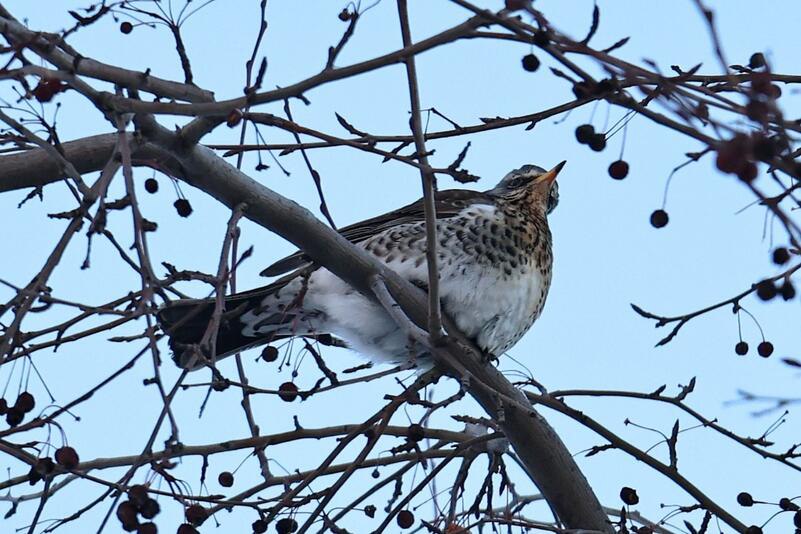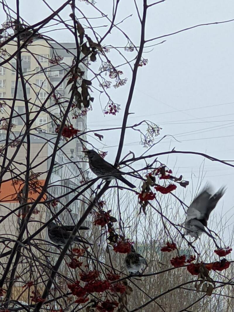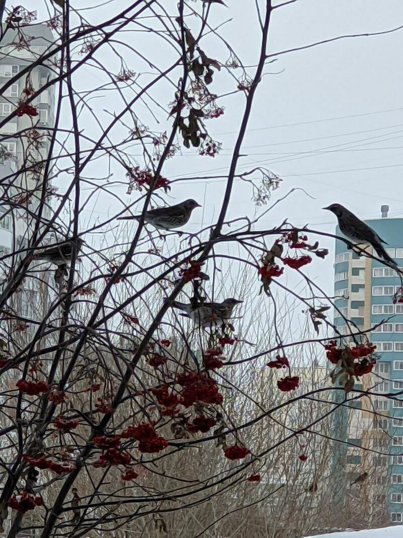 Этой зимой в Барнауле наблюдается массовое скопление дроздов-рябинников. Птицы активно кормятся на рябинах и яблонях как в спальных районах, так и в центральной части города.