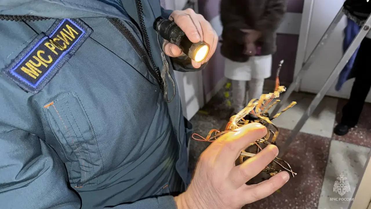 В ходе проверки специалисты обнаружили, что в кабинете на 4 этаже произошло короткое замыкание электропроводки без последующего горения.