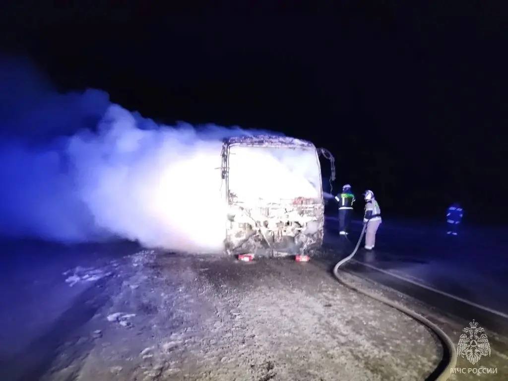 В Топчихинском районе дотла сгорел пассажирский автобус