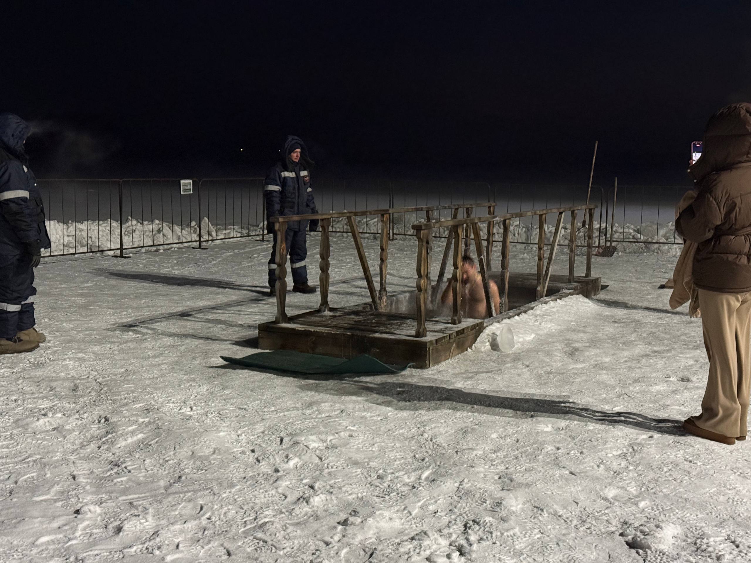 Пока одни загадывали желания, самые смелые горожане уже совершили традиционное крещенское окунание в иорданскую прорубь!