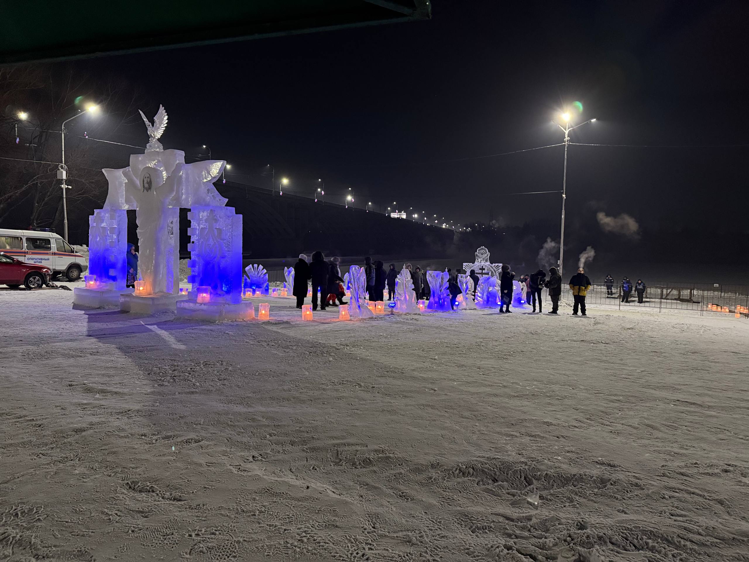 В канун Крещения Господня, несмотря на мороз, бийчане собрались на городском пляже. Повод был особенный: полюбоваться волшебной ледовой экспозицией и принять участие в доброй акции «Зажги свечу - загадай желание».