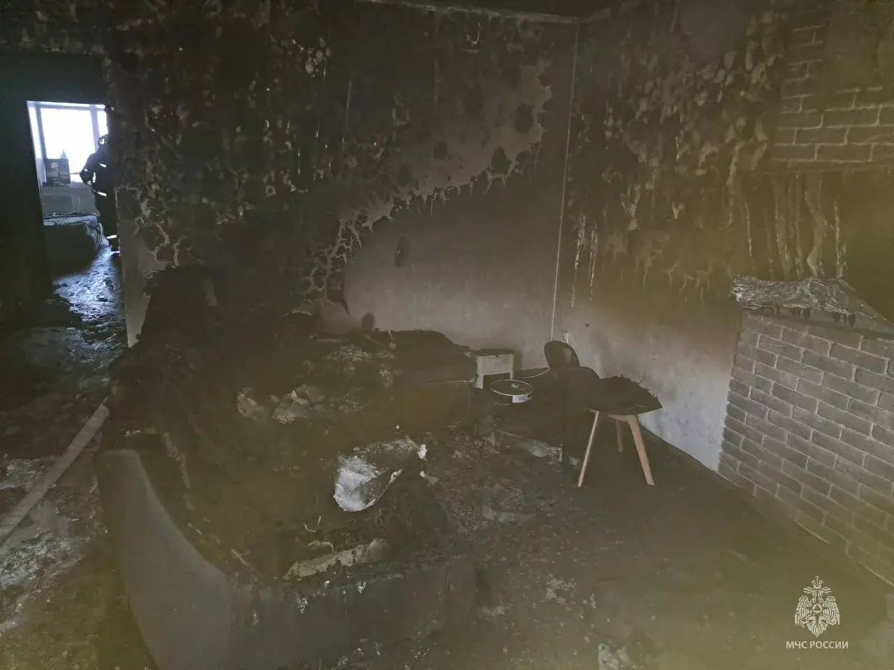 Пожар потушен на площади около 5 квадратов. Спасатели вывели из квартиры женщину и грудного ребёнка, переданы медикам для осмотра. Ликвидировали возгорание 12 пожарных на 4 единицах техники.